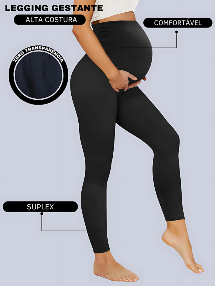 Calca Legging Para Gestante Gravida Maternidade Modelo Sem Transparência barriga cós alto