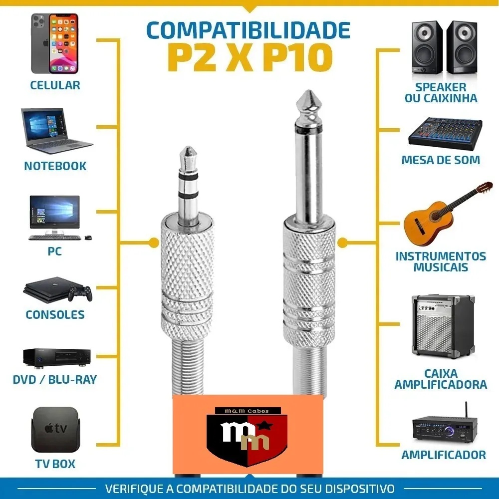 Cabo P10 Mono X P2 Estéreo Profissional Blindado Mesa Som 3m