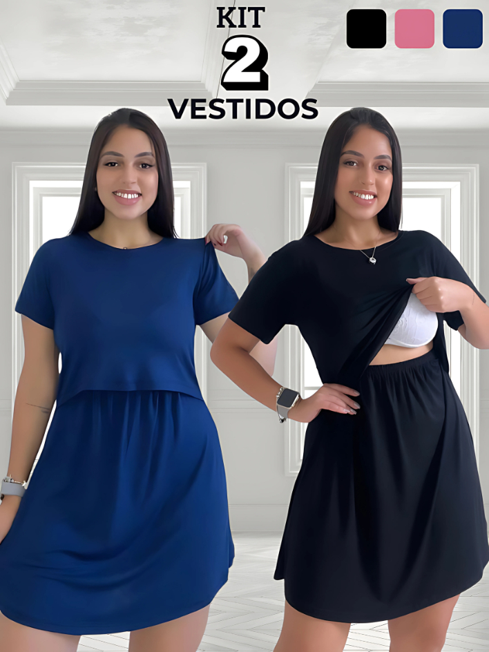 Kit 2 Vestido Amamentação Gestante Pós Parto Maternidade Casual Confortável Amamentar