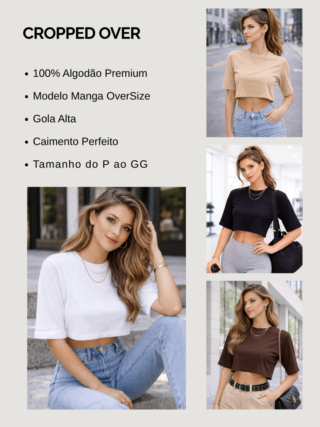 Cropped Camiseta Over Size Feminina Blusa Soltinha Algodão Tshirt Confortavel
