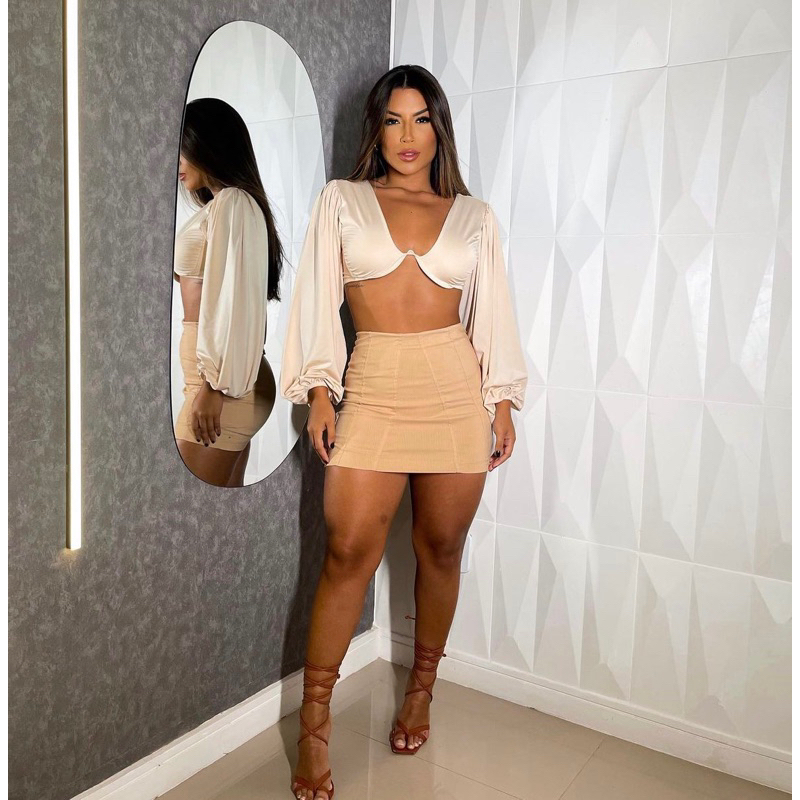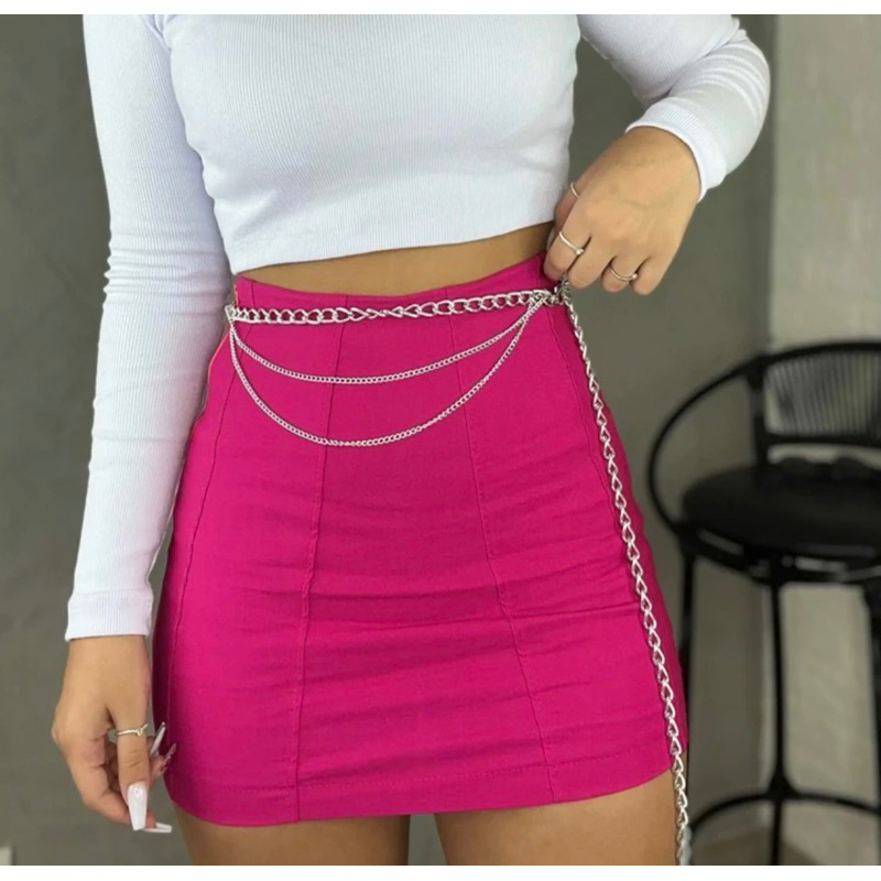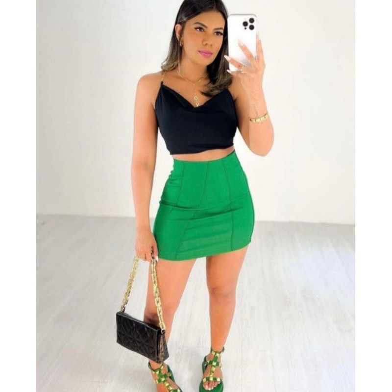 Short Saia Bengaline Cintura Alta Moda Verão