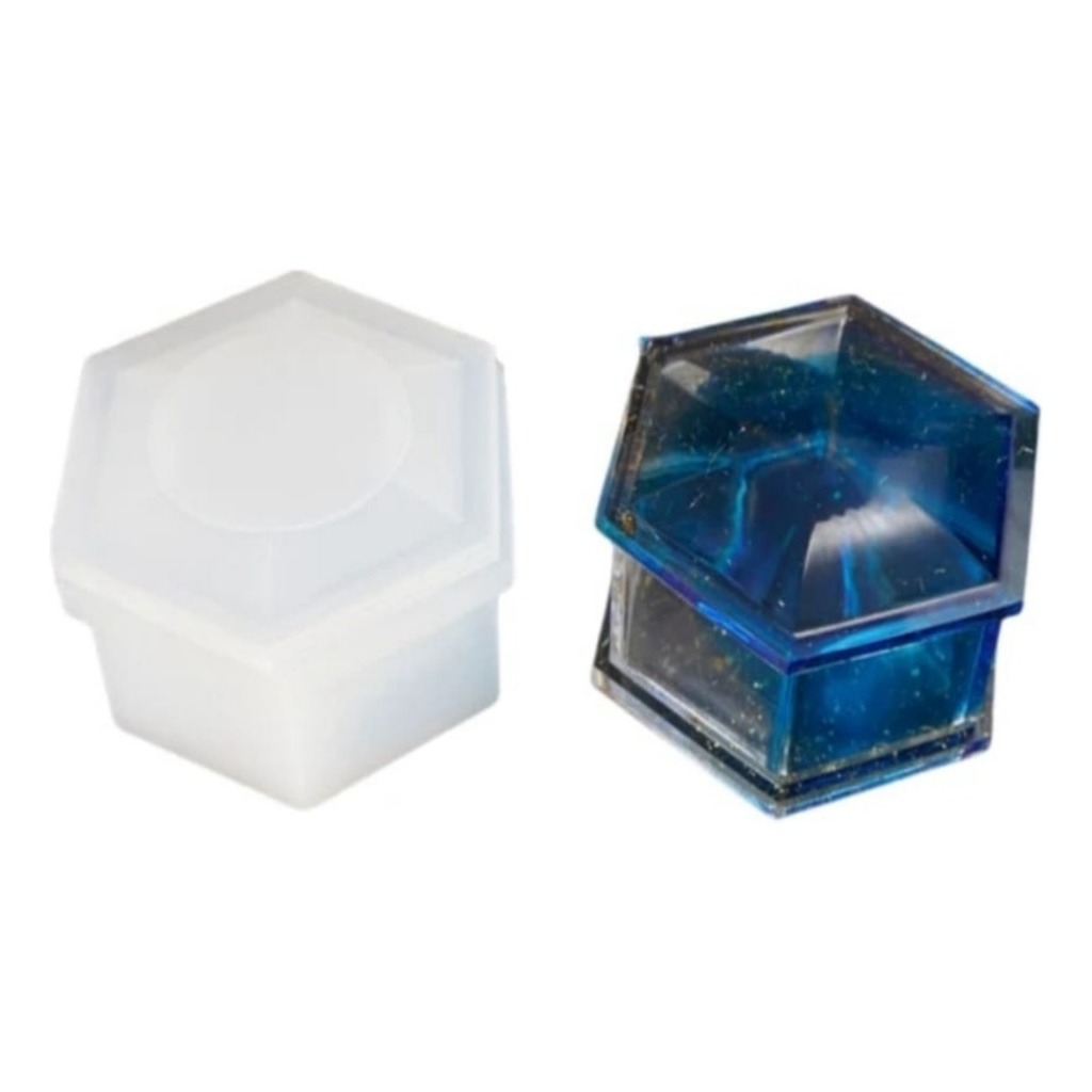 Forma de Silicone Pote Hexágono com Tampa Para Lembrancinhas e Decoração em Resina