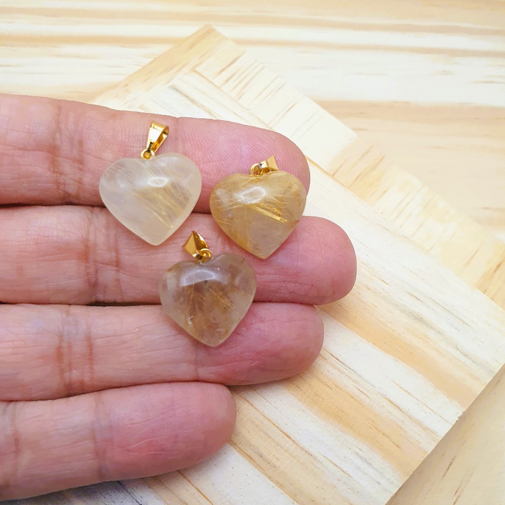 Pingente folheado a ouro pedra 17mm coração pequeno