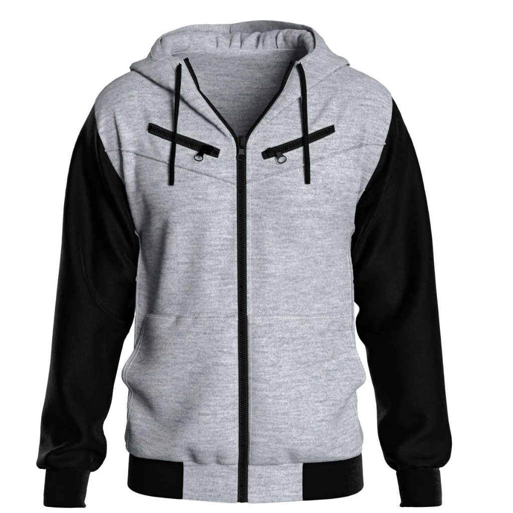 Jaqueta De Frio Moletom Casaco Liso Cinza Preto Blusa Com Zíper E Bolsos RK