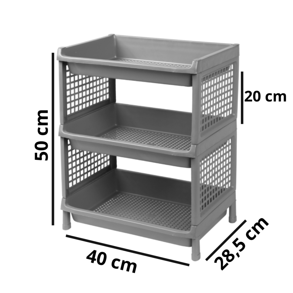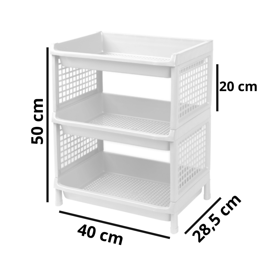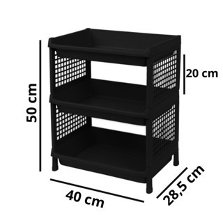 Estante com 3 Prateleiras Organizadora de Plástico Modular Multiuso para Cozinha Quarto Escritório Fruteira