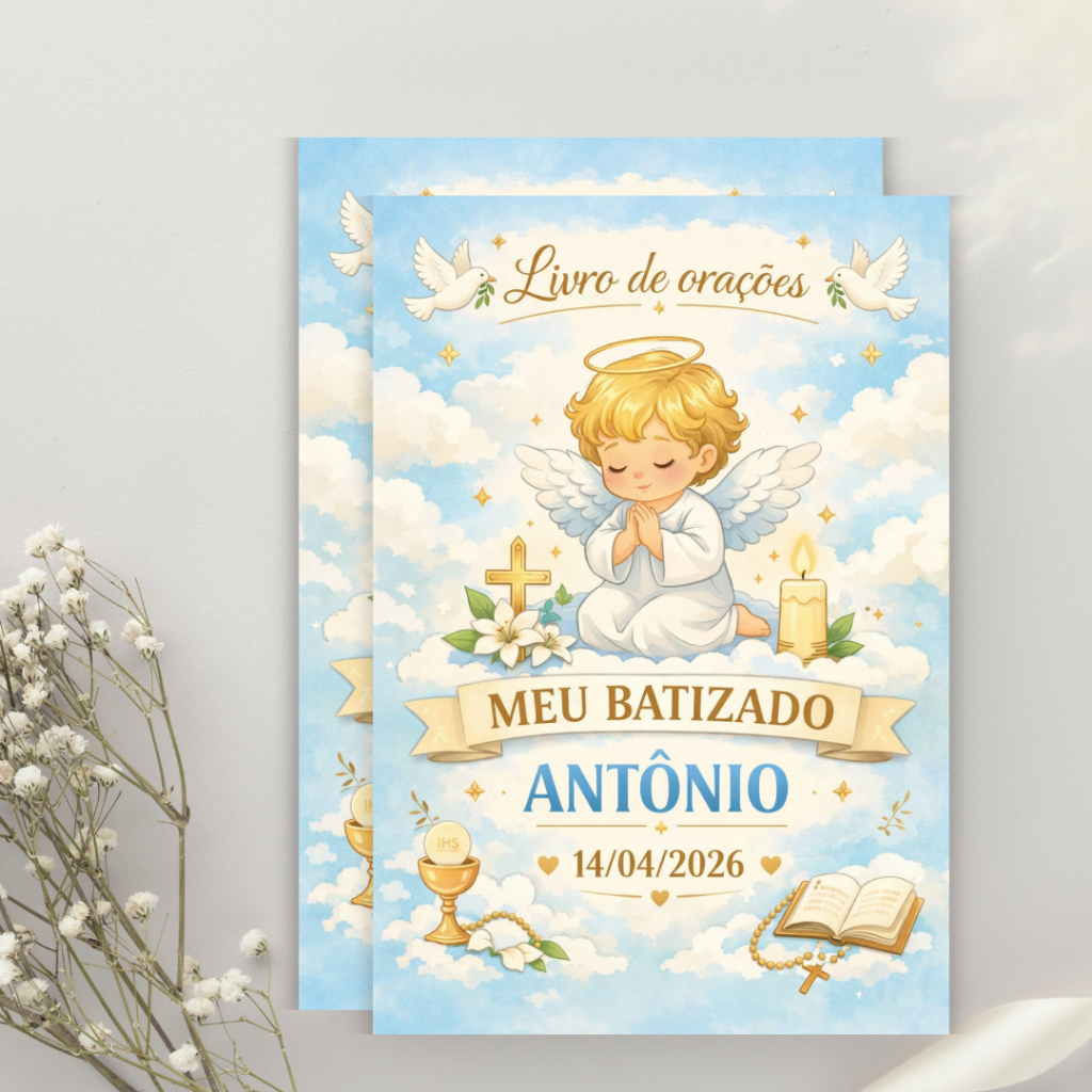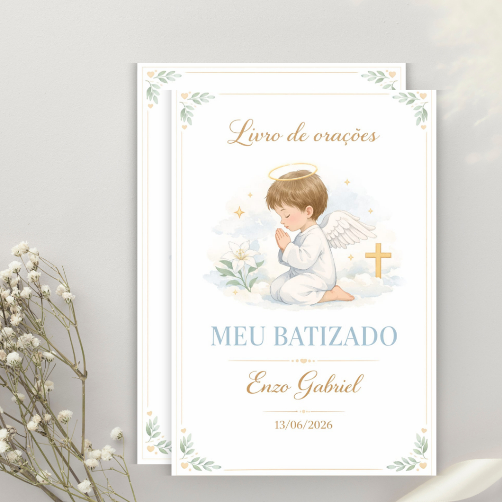 KIT 12 LIVROS DE ORAÇÃO PERSONALIZADOS PARA LEMBRANCINHA DE BATIZADO