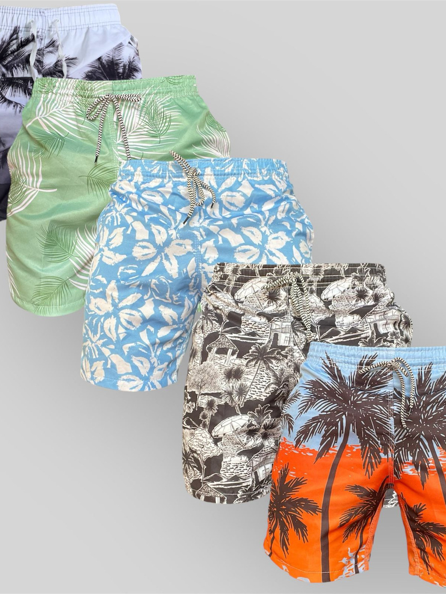 Kit 5 Shorts Masculino Bermuda Praia Tactel Estampado Verão