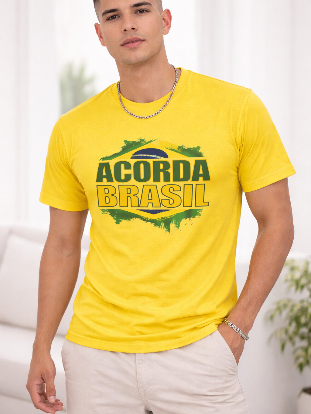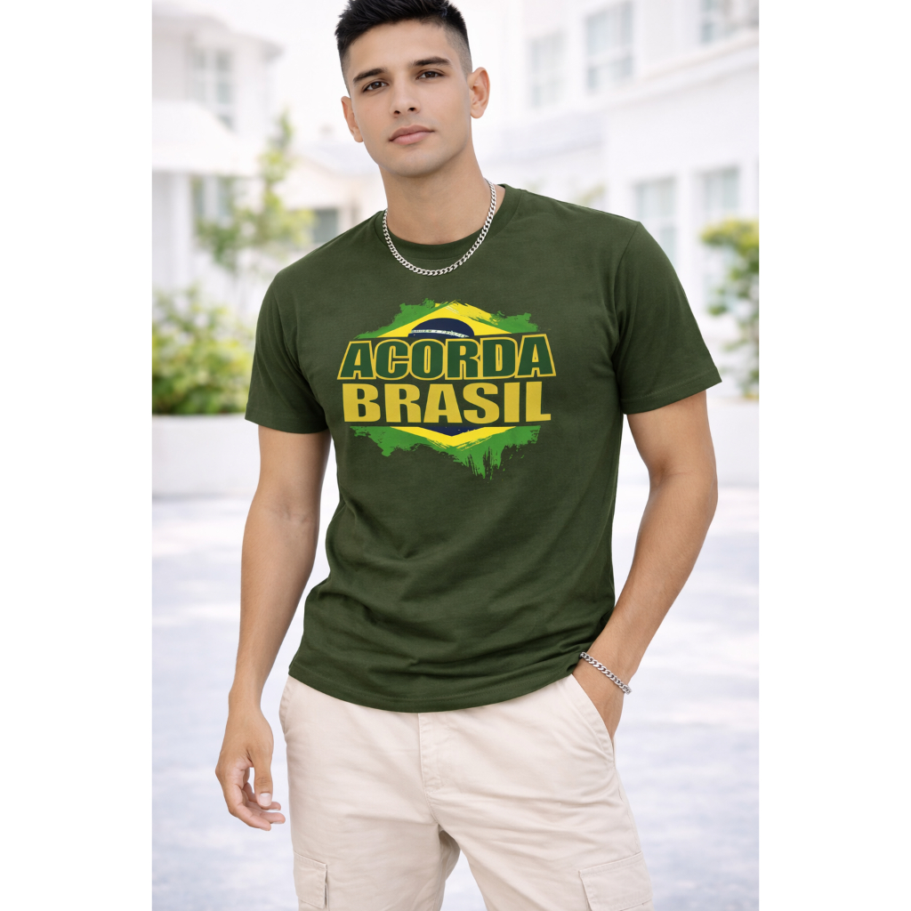 Camiseta 100% Algodão Acorda Brasil 2026 Movimento Patriota Nacional