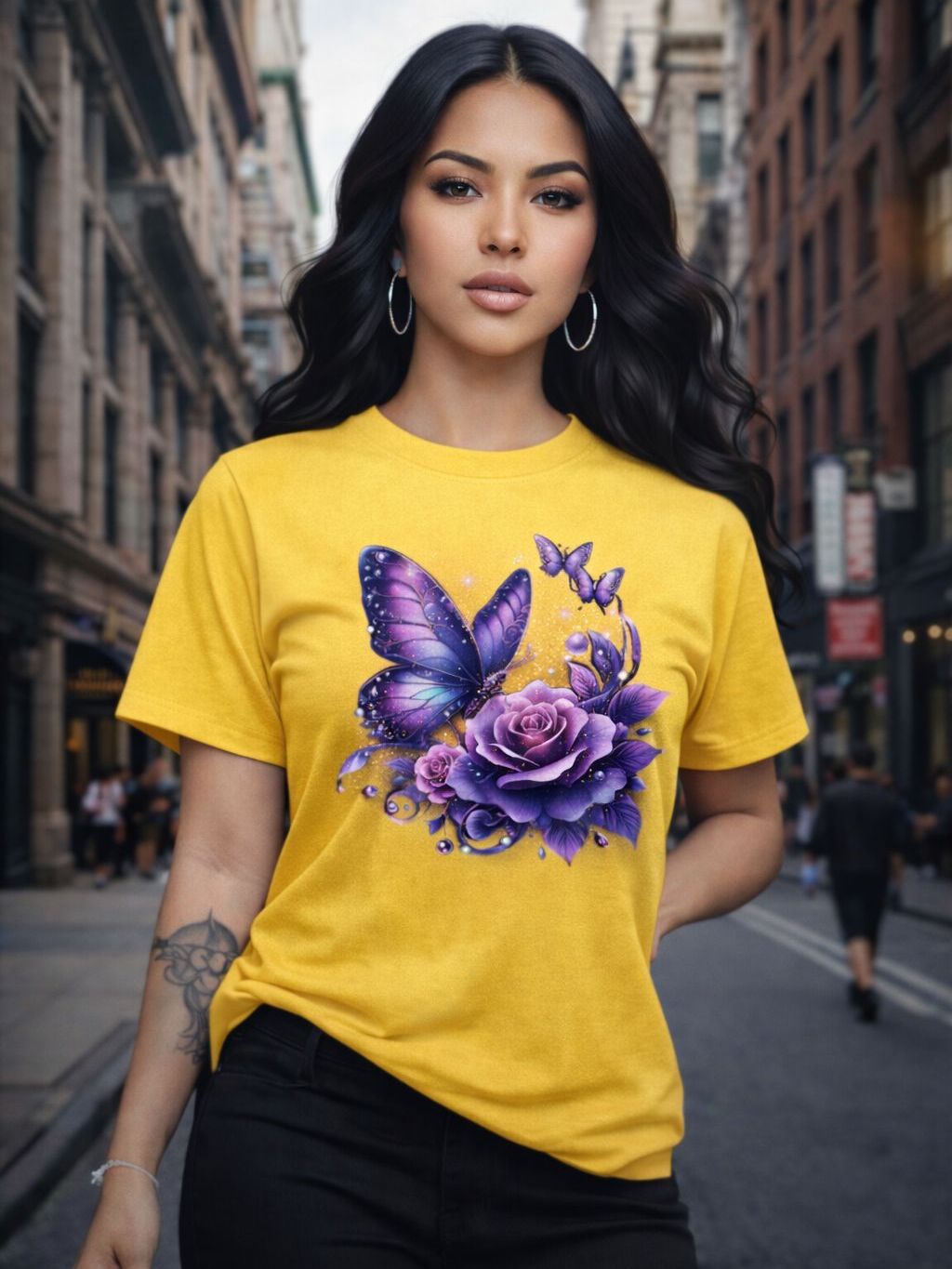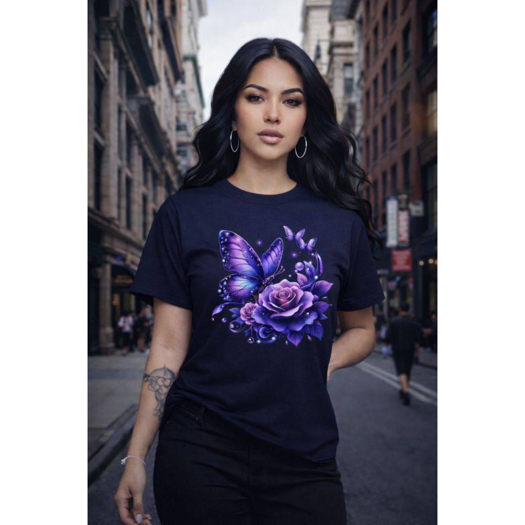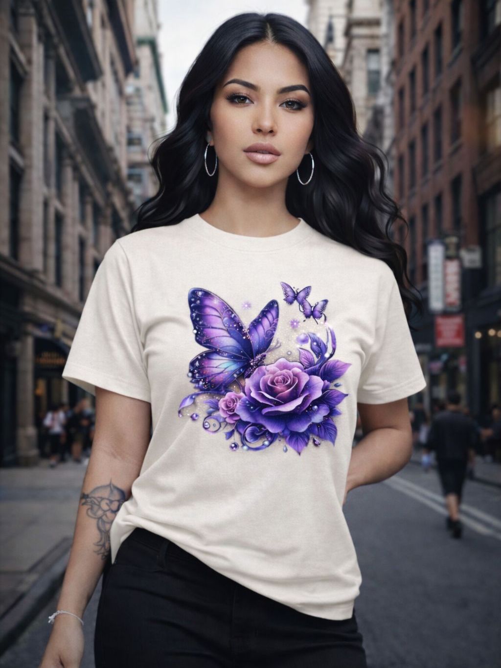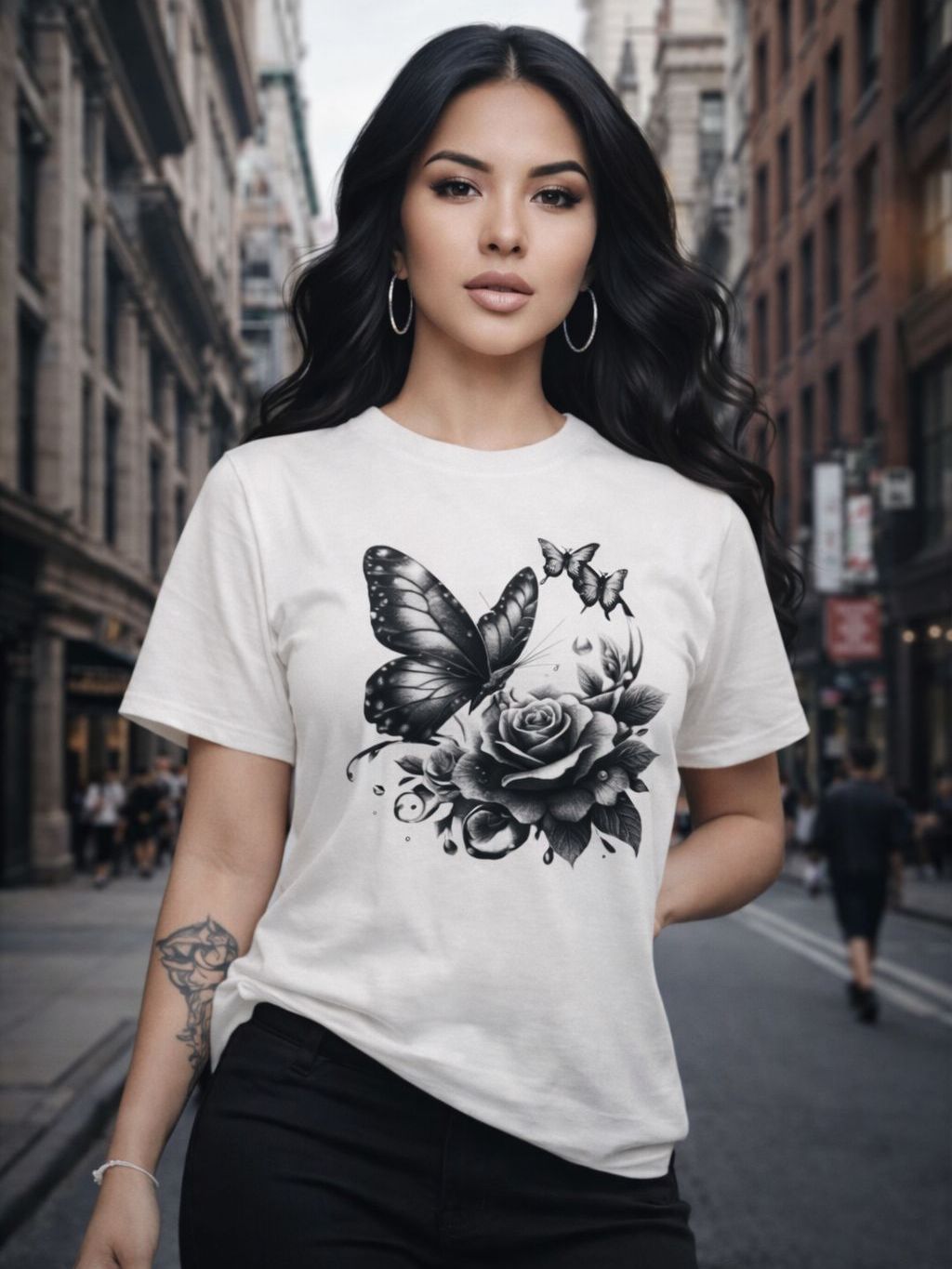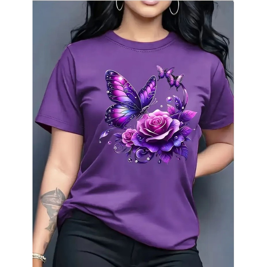 Camiseta Feminina Estampada Borboleta Floral Algodão100% T-Shirt Moda Casual Envio Rápido