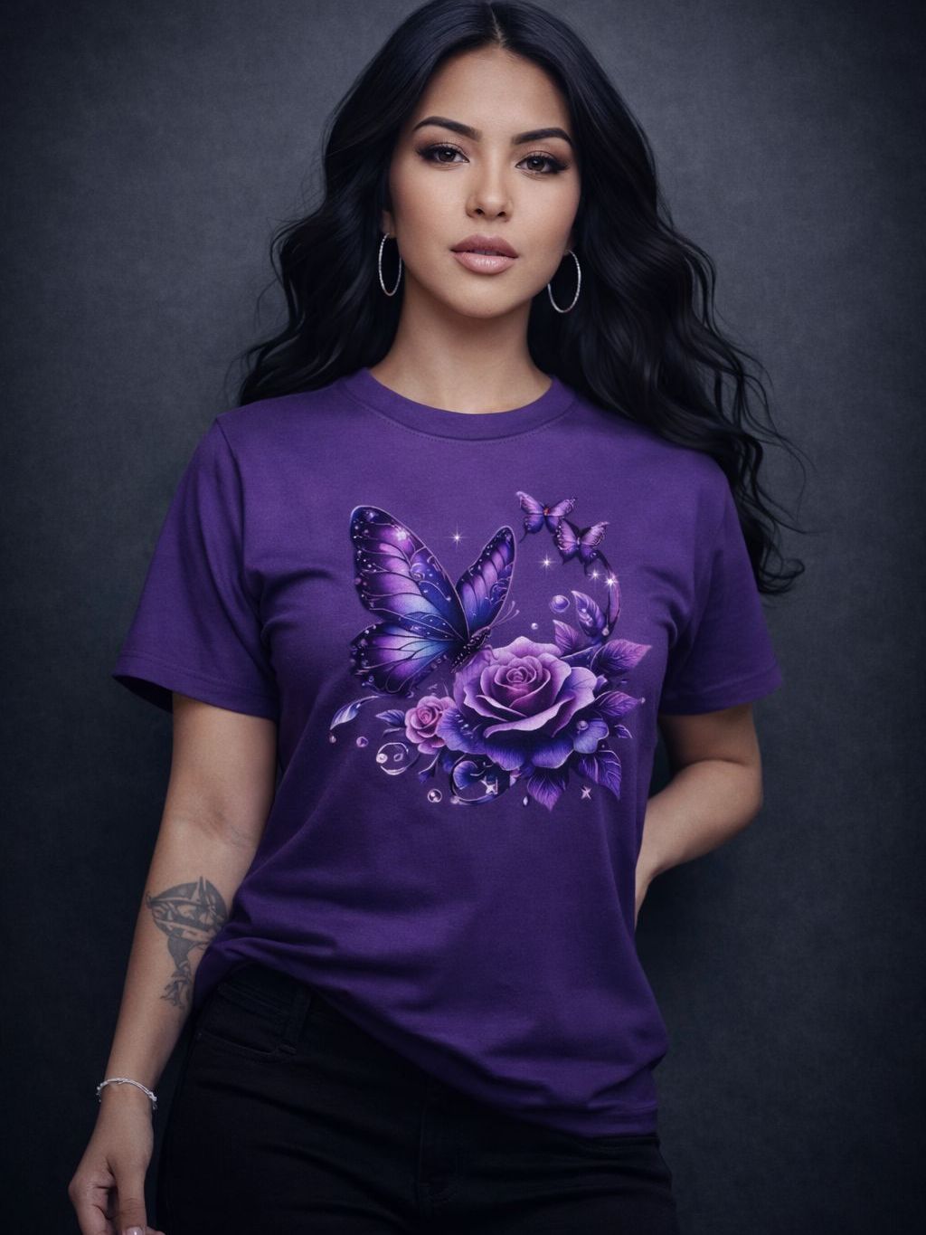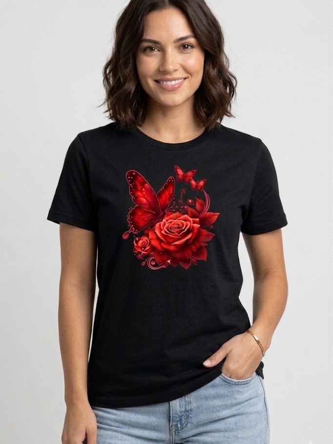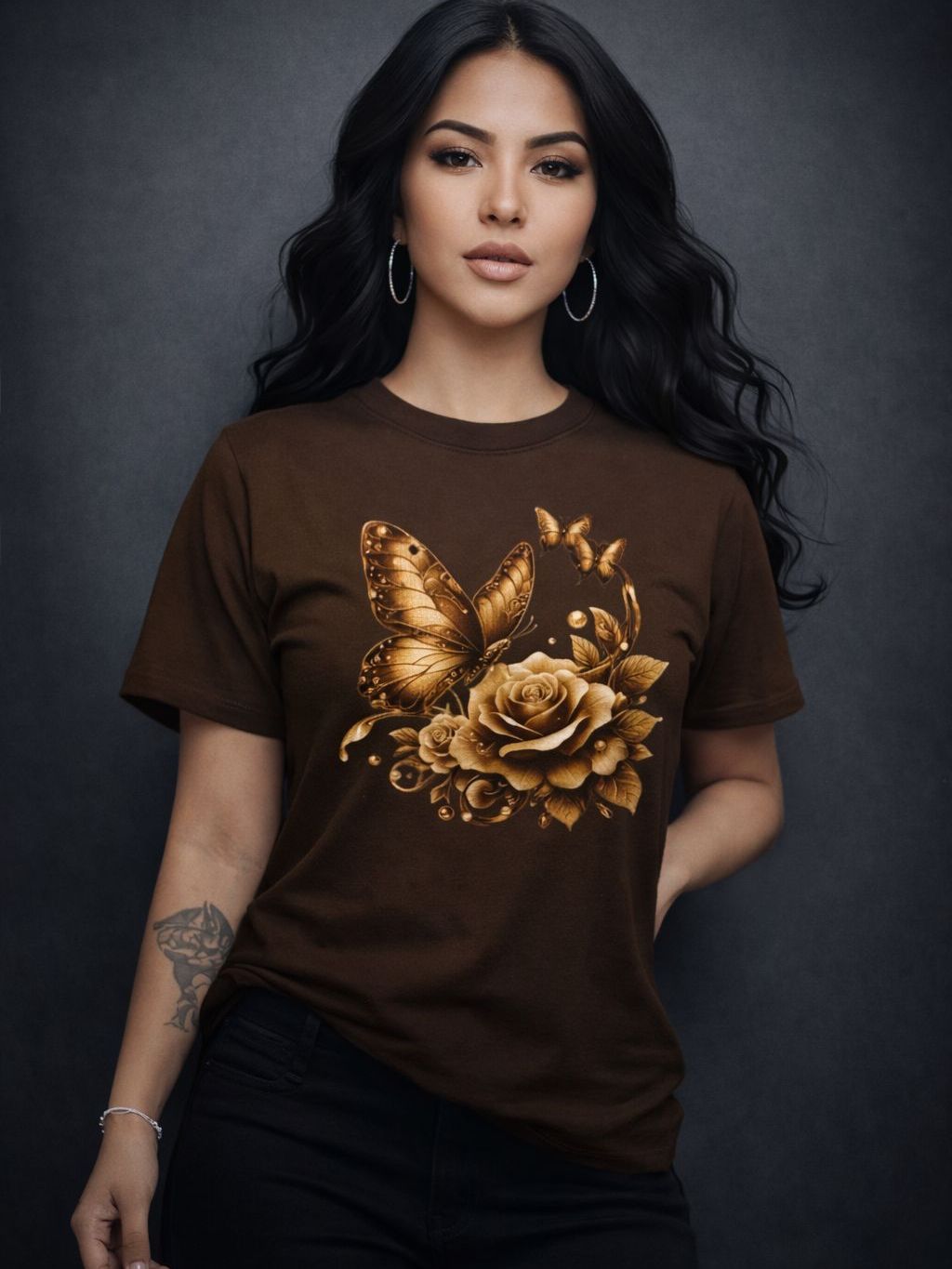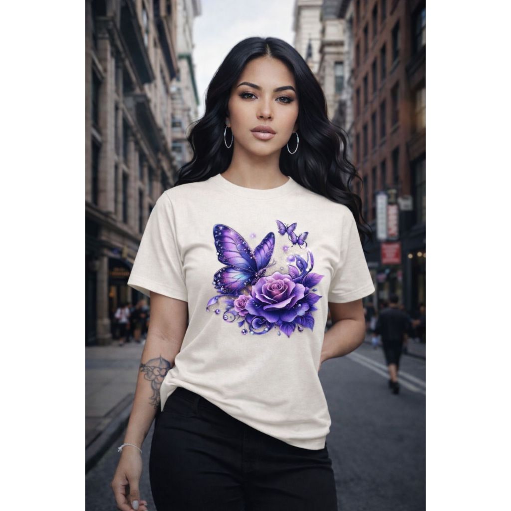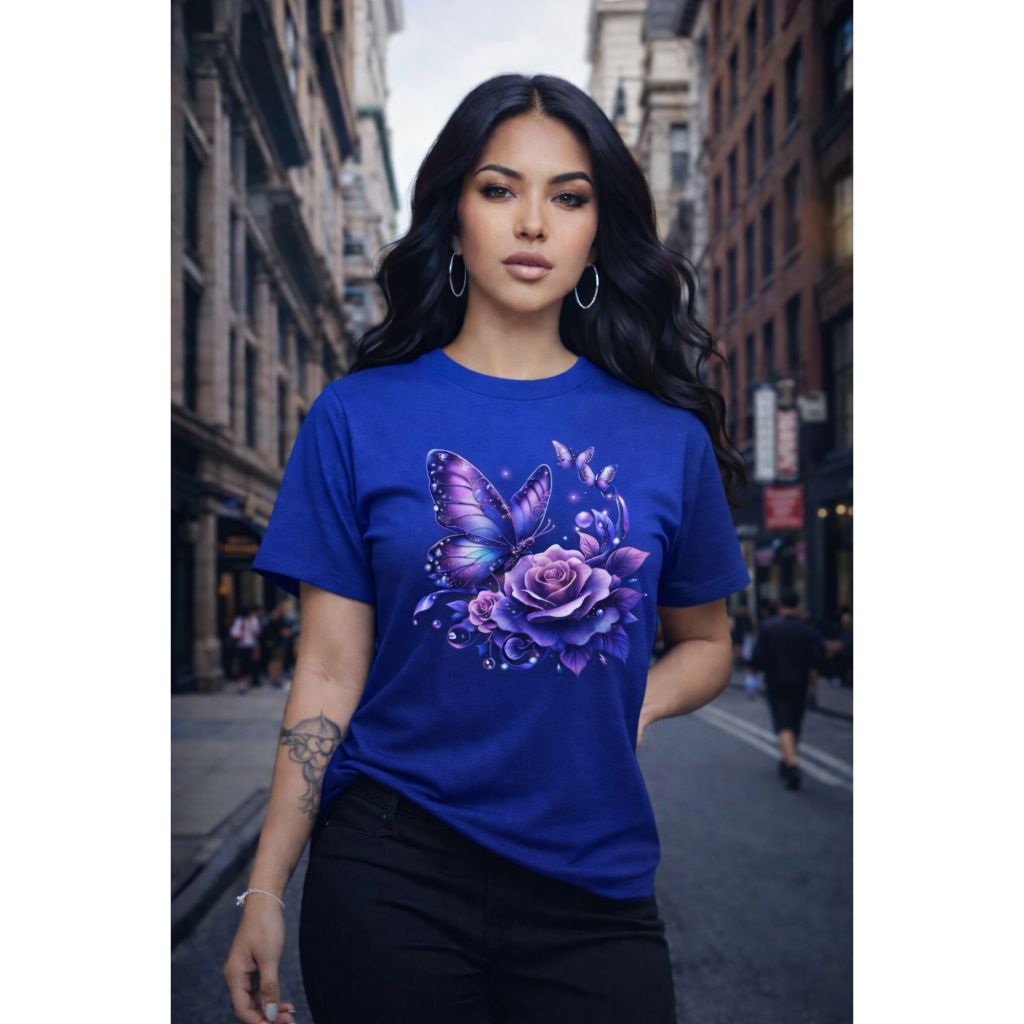 Camiseta Feminina Estampada Borboleta Floral Algodão100% T-Shirt Moda Casual Envio Rápido