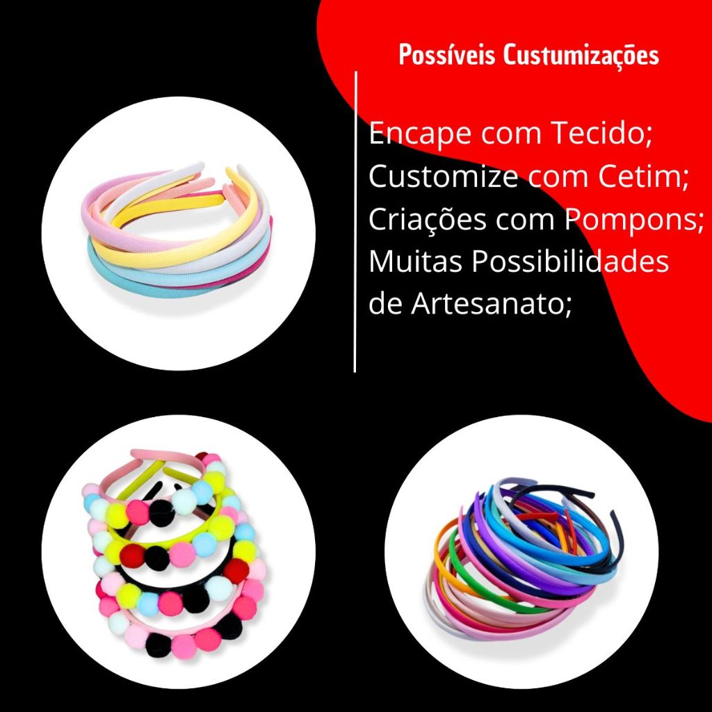 Kit 24 Tiara Arco Arquinho Plástica Encapar Customizar Preta 10mm/1cm Encapar/forrar