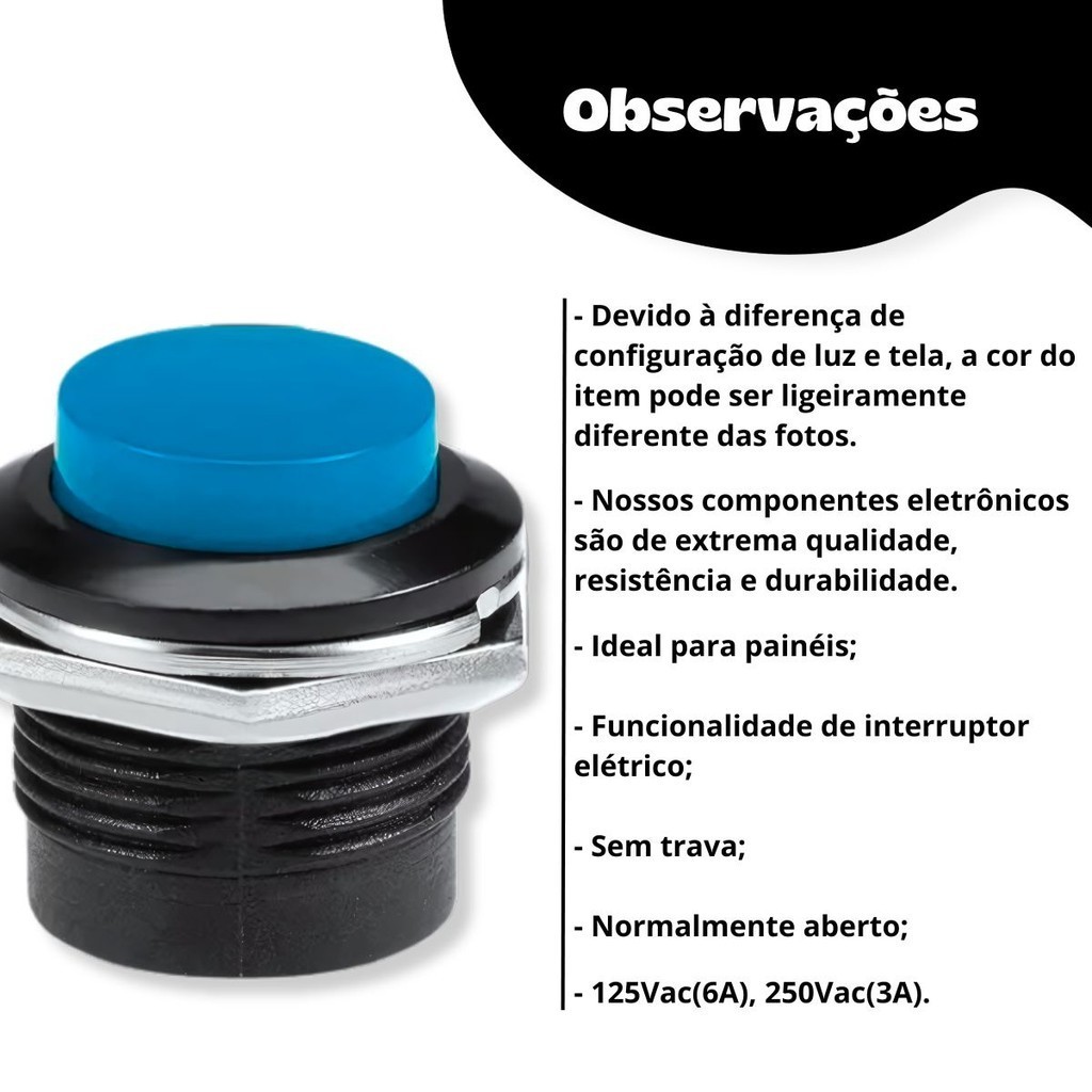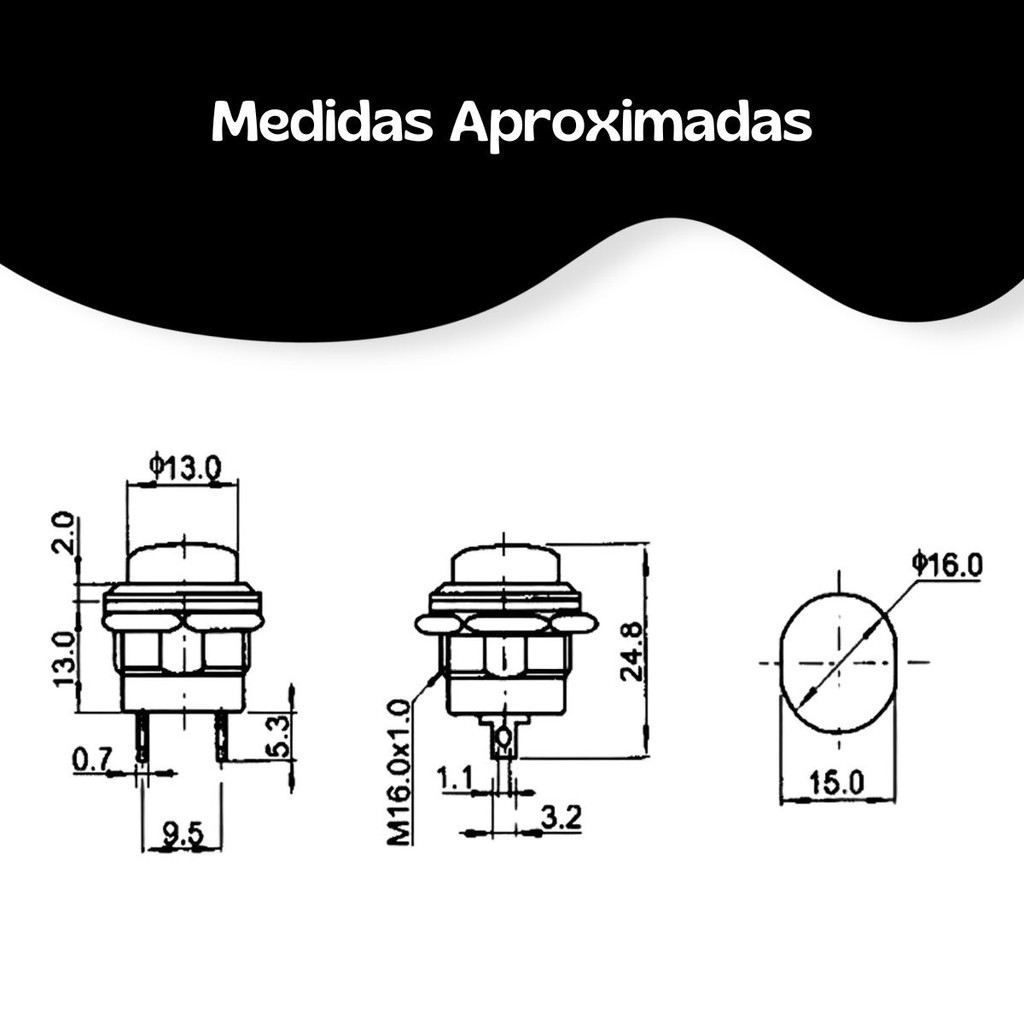 01 Botão Chave Buzina R13-507 Sem trava Buttom Push Universal Start