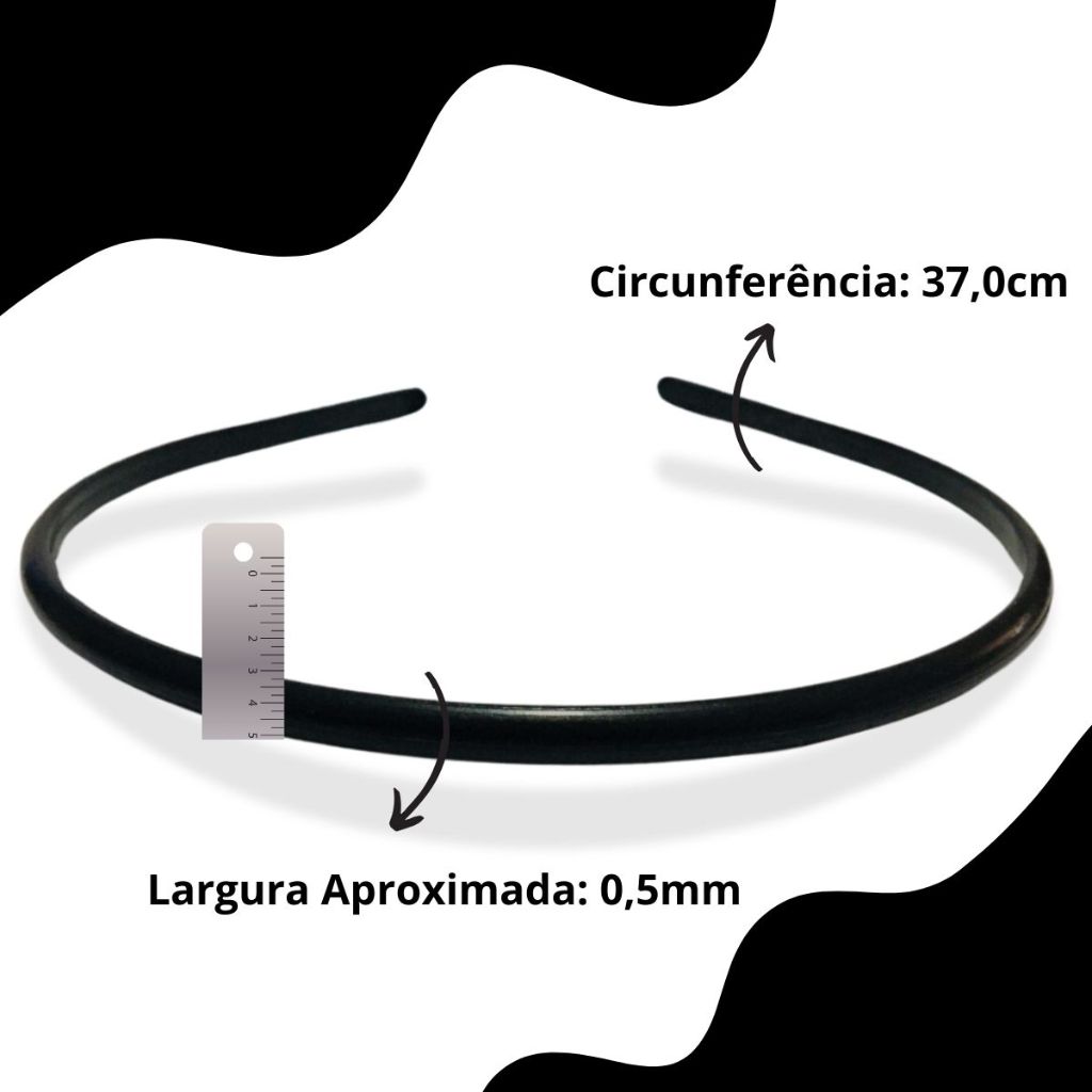 Kit 24 Tiara Arco Arquinho Plástico Forrar/Encapar/Costumizar Extra Fina Simples Preta Lisa - 5mm