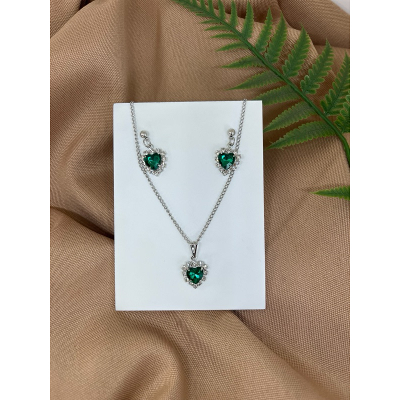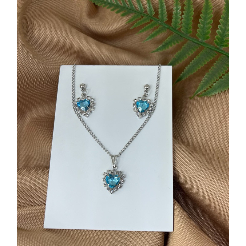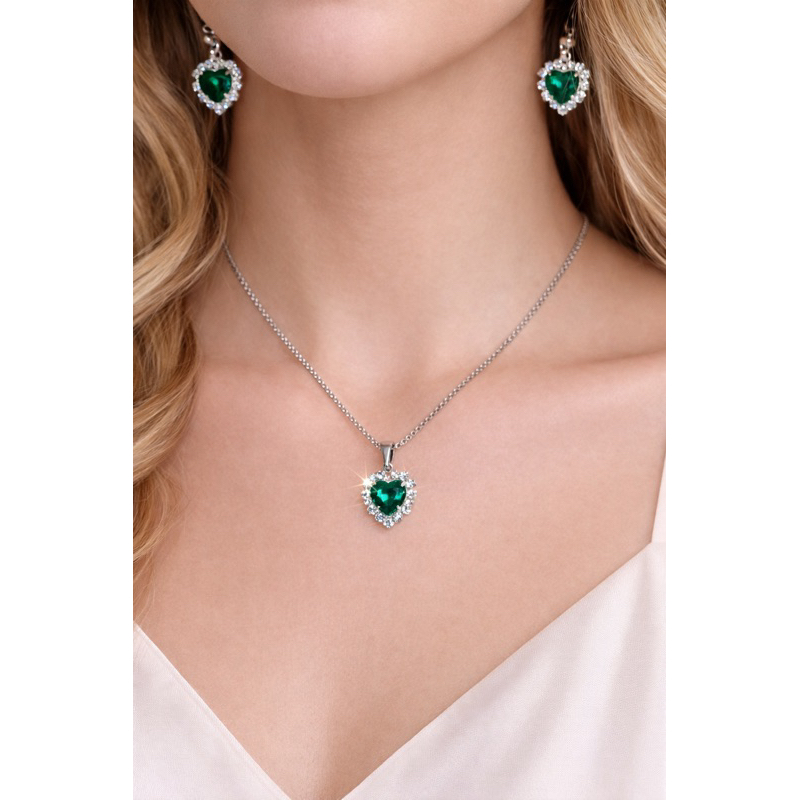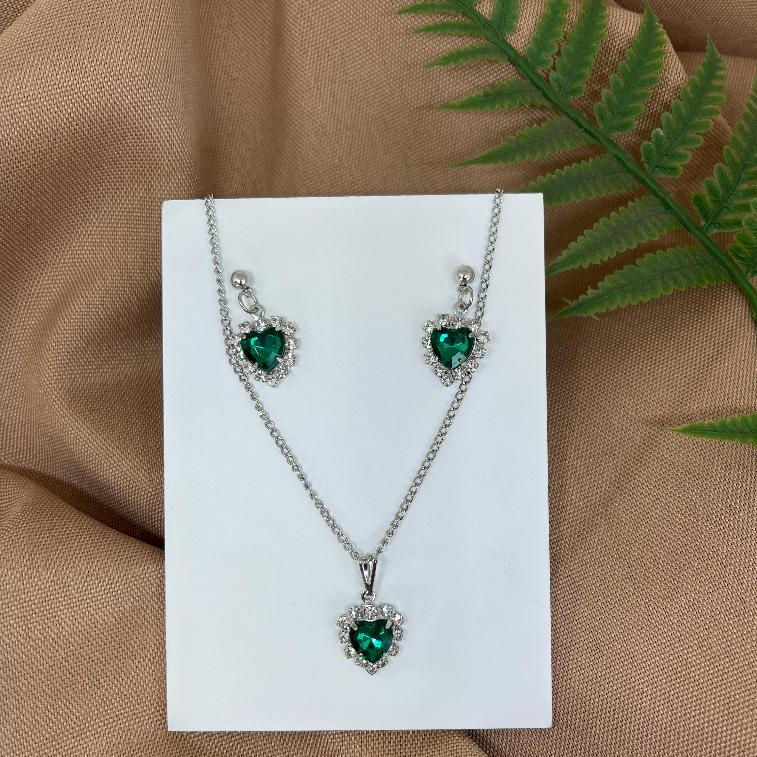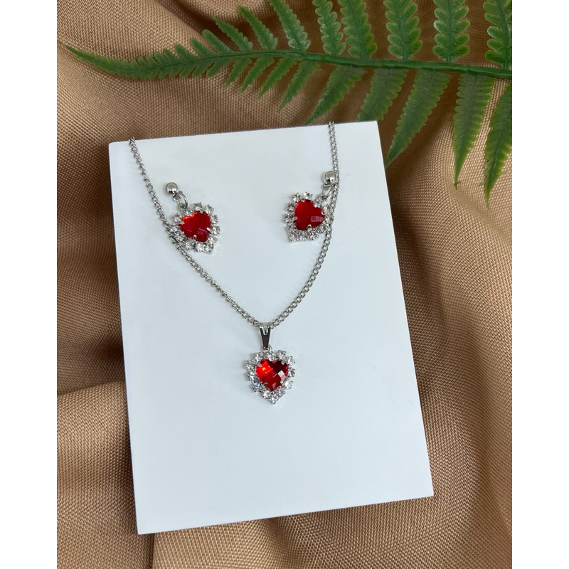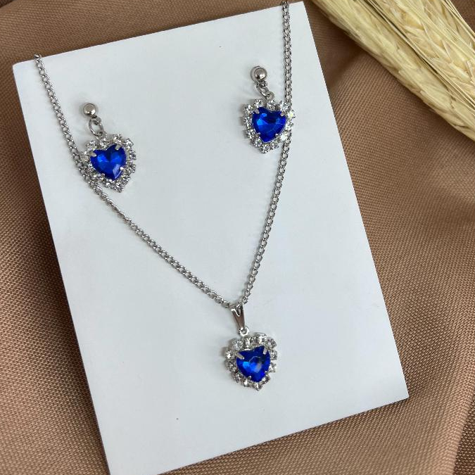 Conjunto colar e brinco pingente aço inoxidavel antialérgico coração cravejado