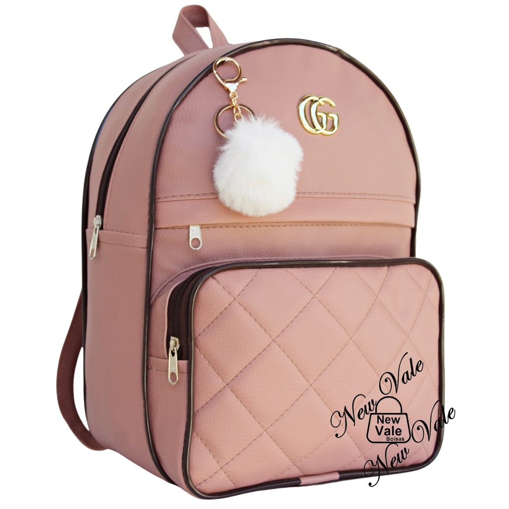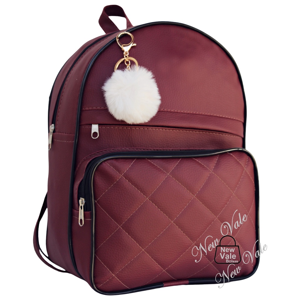 Mochila Feminina Mochilinha Bolsa Feminina Alças Reguláveis + Pompom Exclusivo Três Repartições