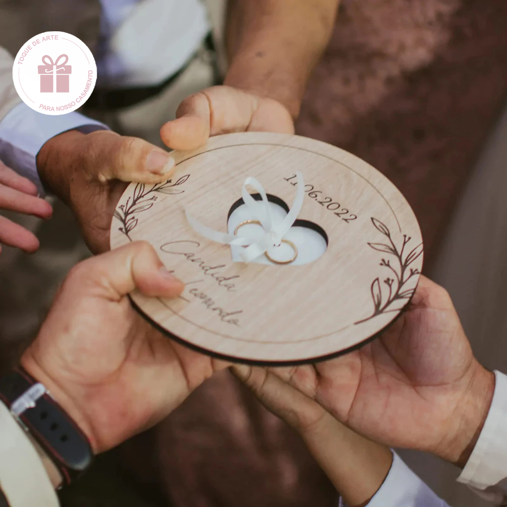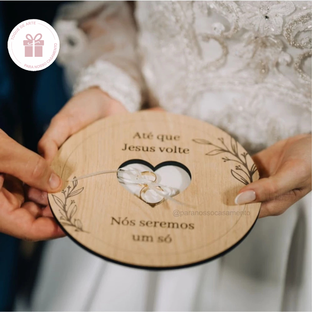 PORTA ALIANÇAS PERSONALIZADO COM NOMES/DATA/FRASE OU VERSÍCULO REDONDO CORAÇÃO VAZADO CASAMENTO BODAS