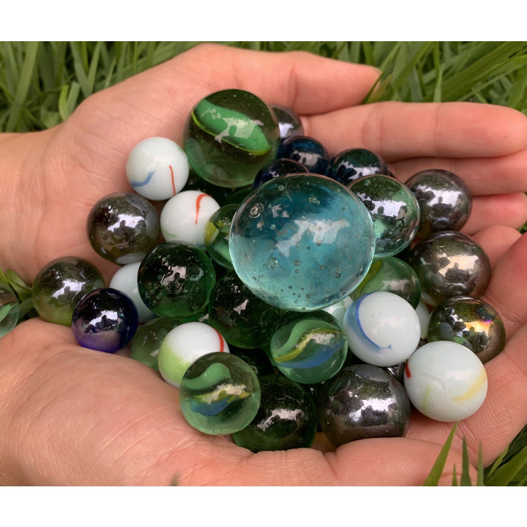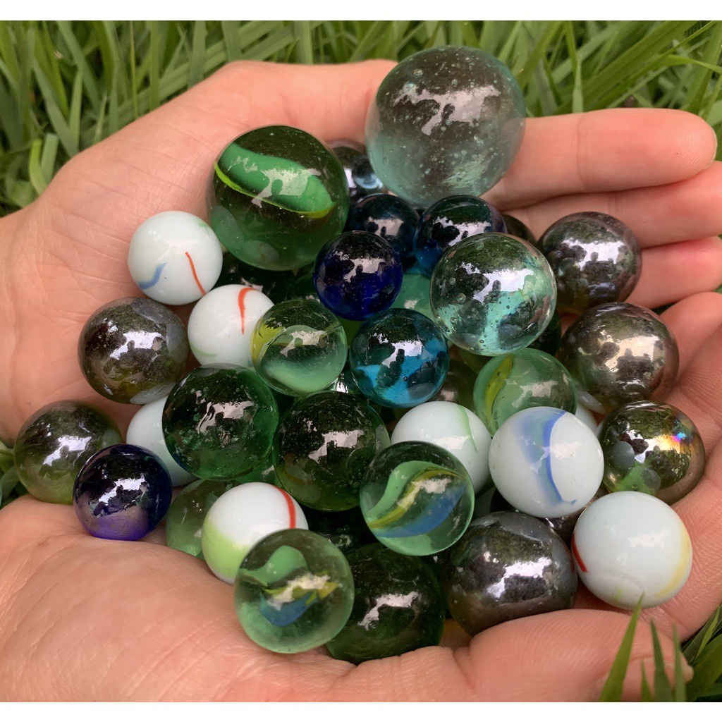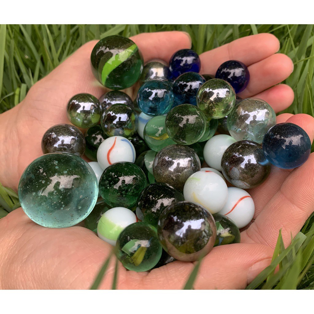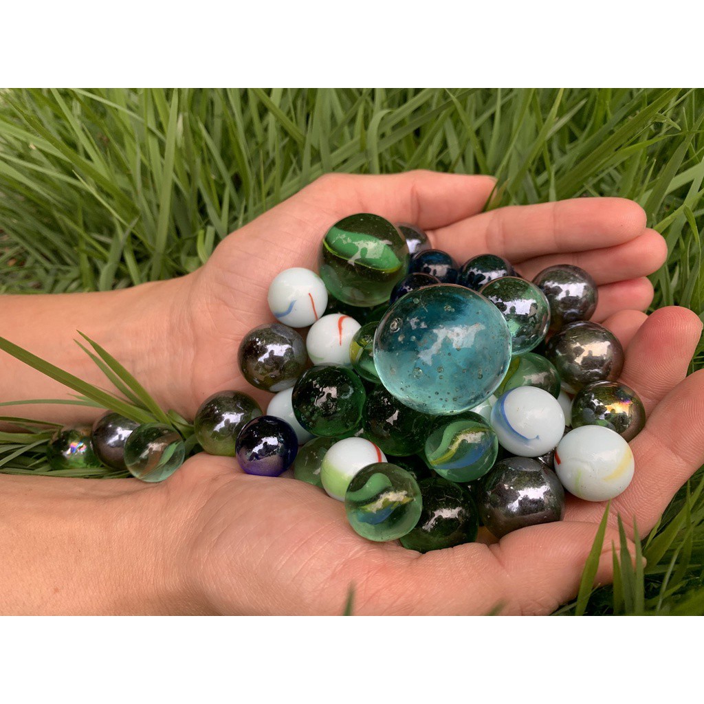 52 Bolinhas de Gude MIX c/ 7 Modelos Diferentes de Vidro Decoração Bolita Bila Birosca peteca
