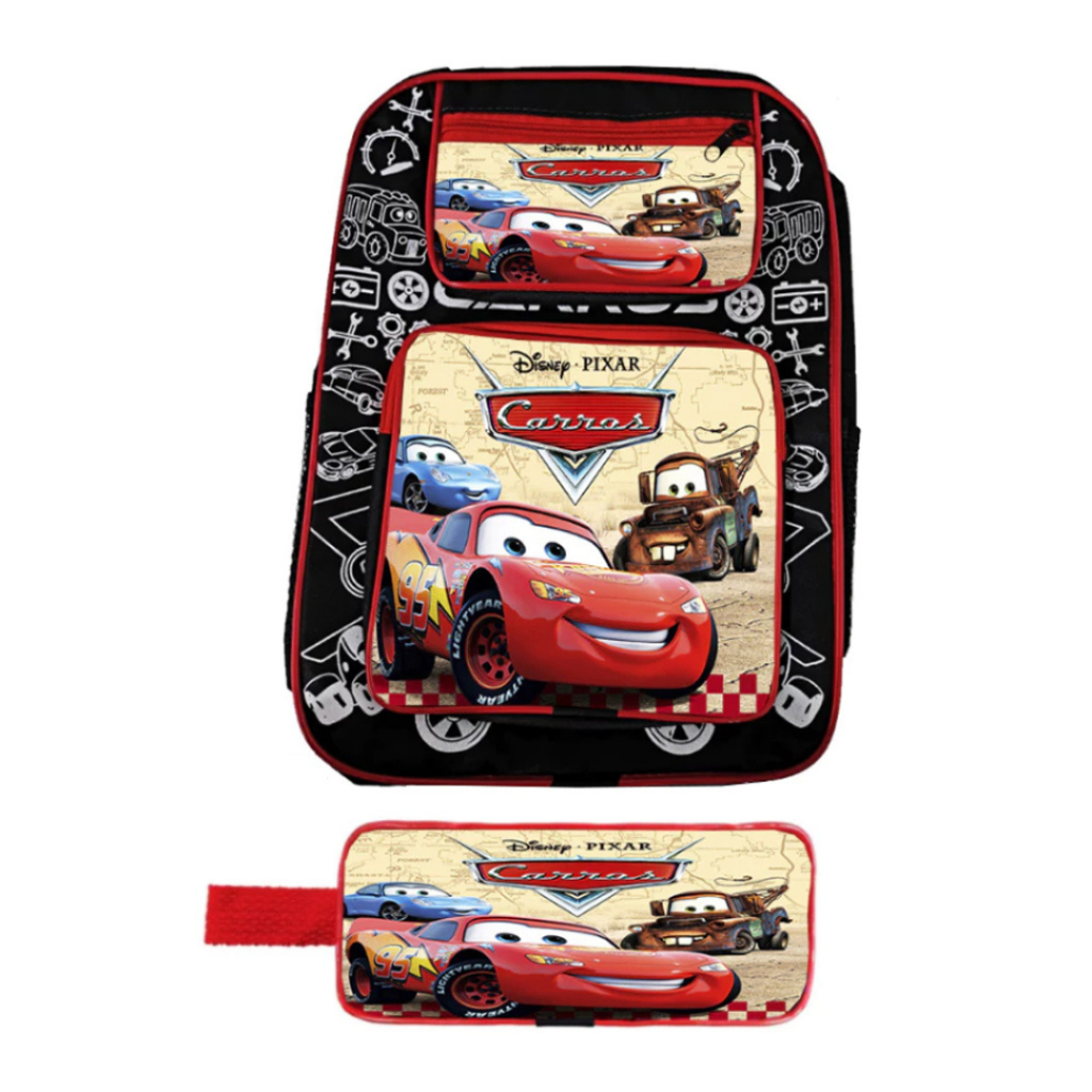 Kit Escolar Mochila Grande e Estojo Infantil Masculino Menino Carros Relâmpago McQueen