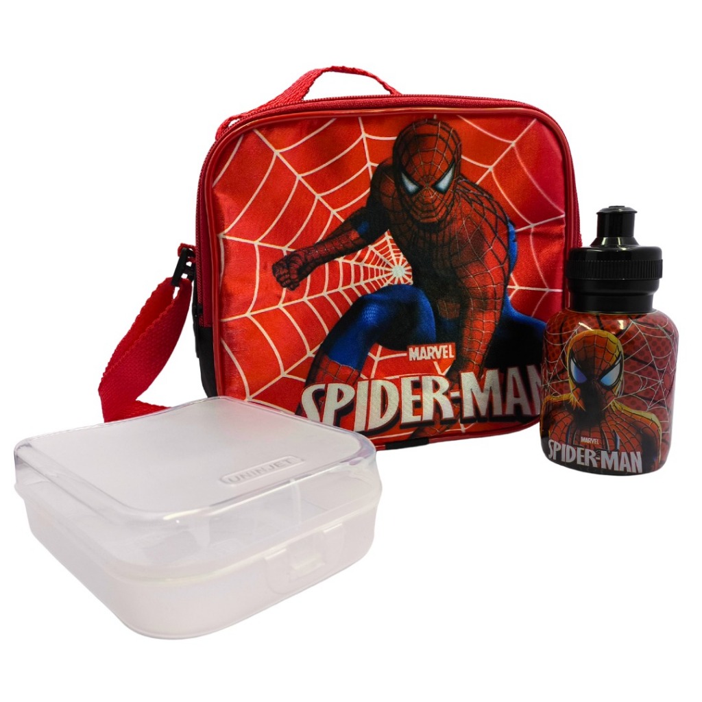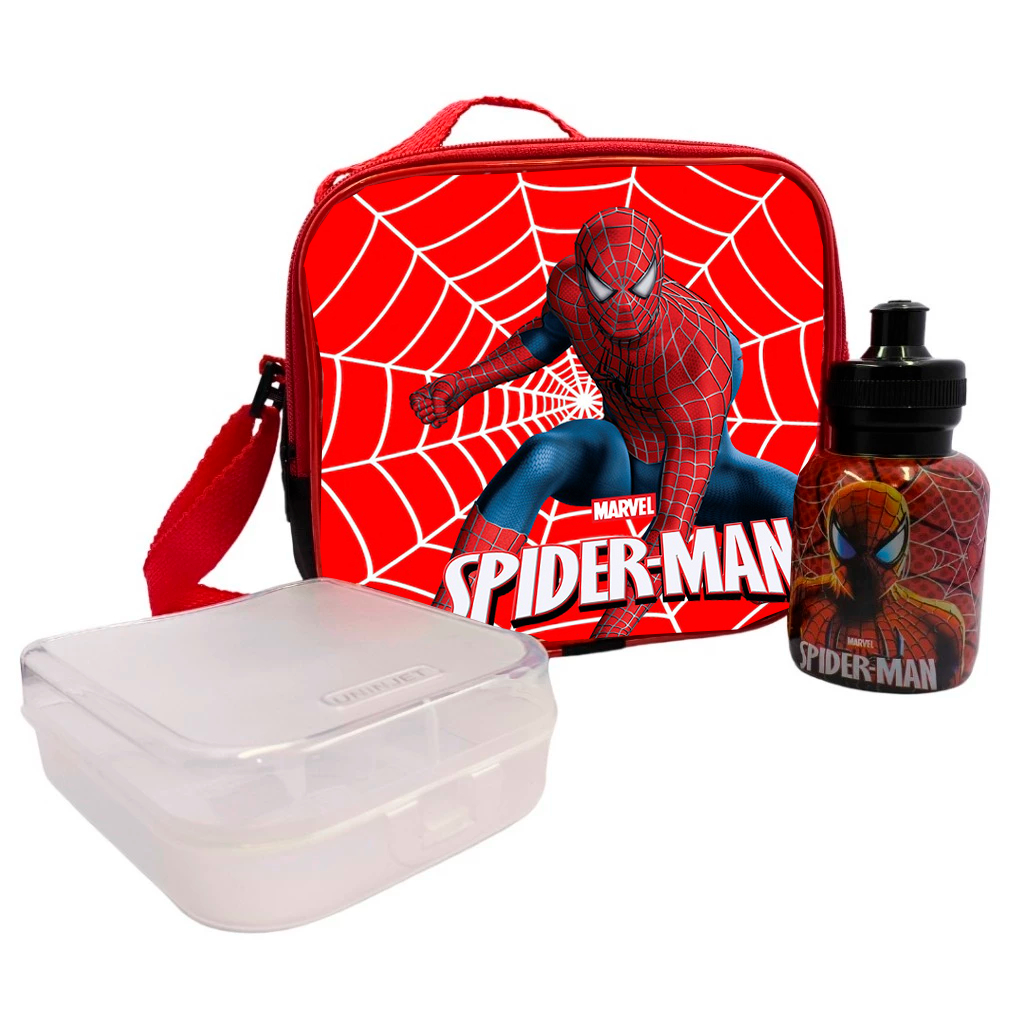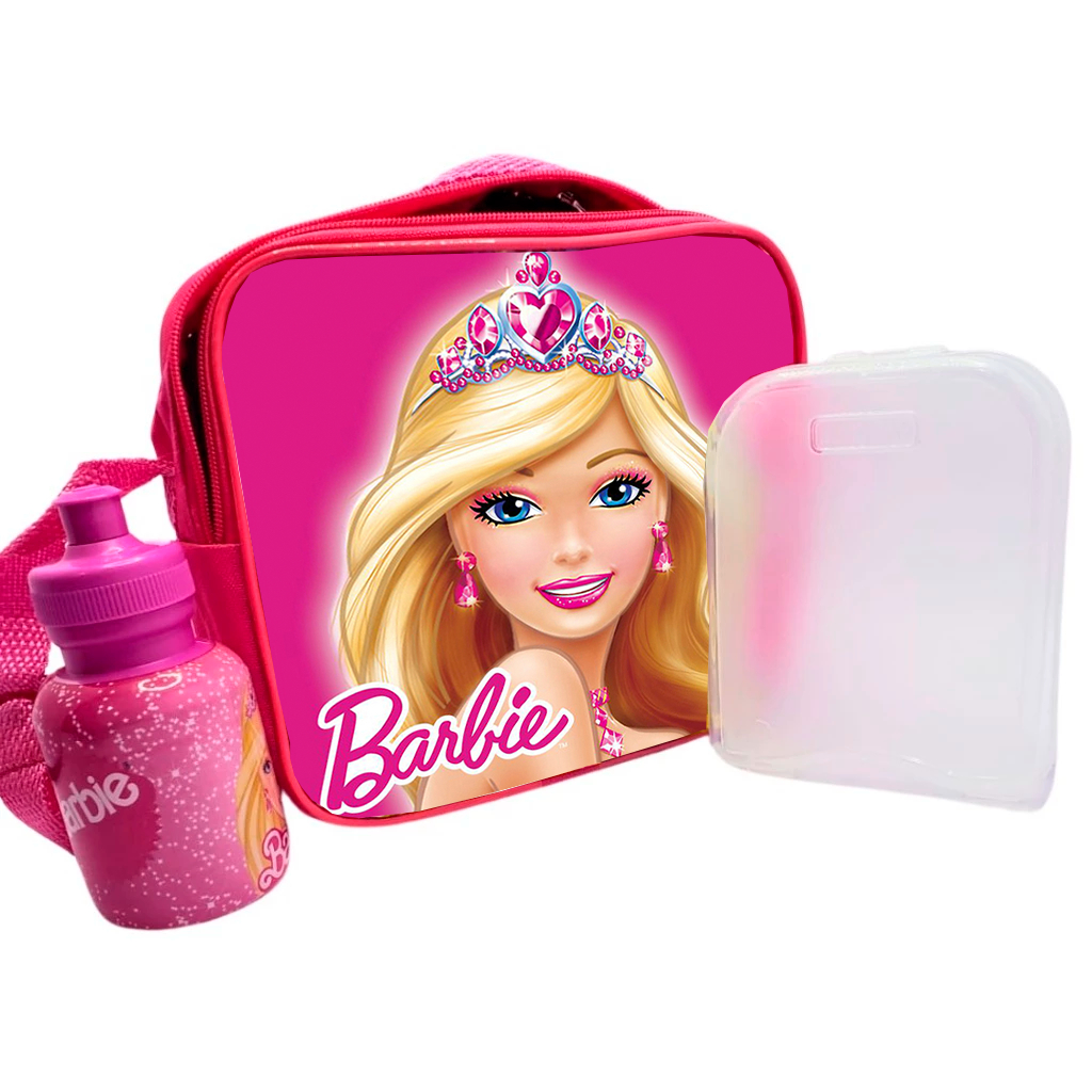 Kit Escola Lancheira Térmica Infantil Squeeze Sanduicheira Personagens Barbie Homem Aranha Carros