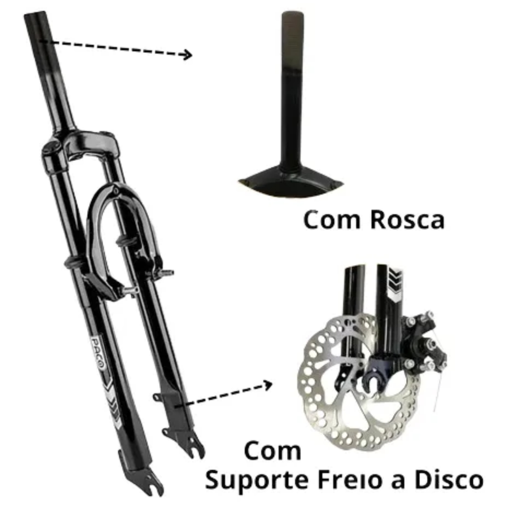 SUSPENSÃO ARO 26 AÇO PACO STANDARD 21.1MM ROSCA DISCO V-BRAKE