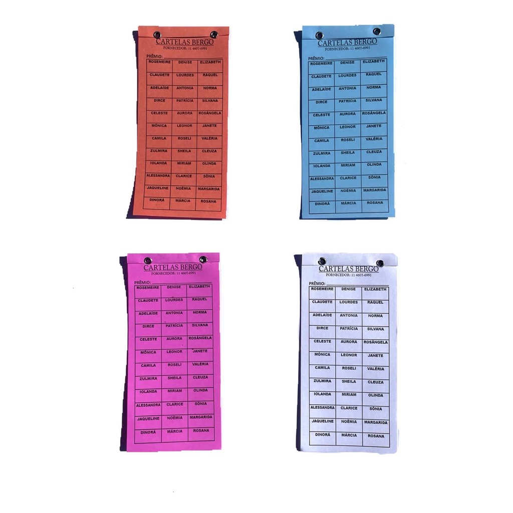 Cartela de Rifa 36 Nomes ( Pacotes com 10 Unidades)