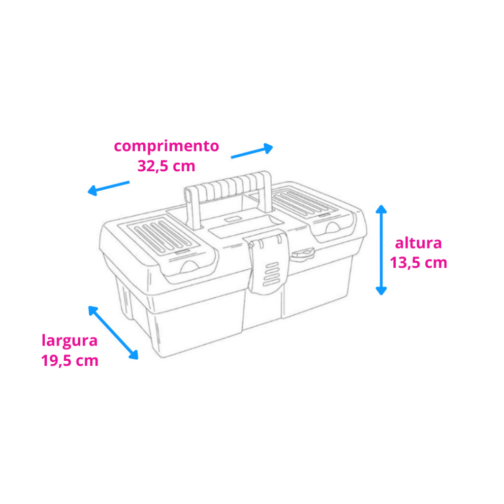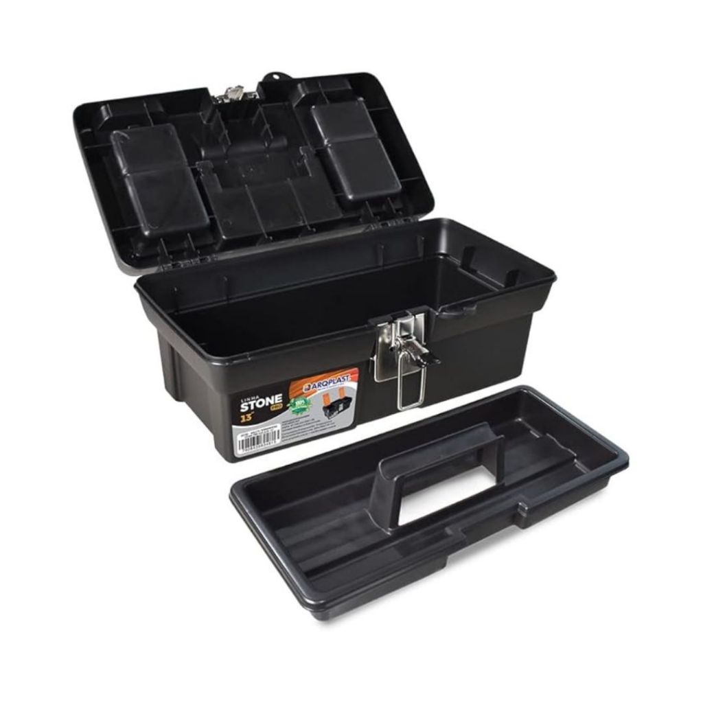 Maleta Caixa de Ferramentas Média Multiuso Pro Alta 13 Stone Fecho de Aço Arqplast