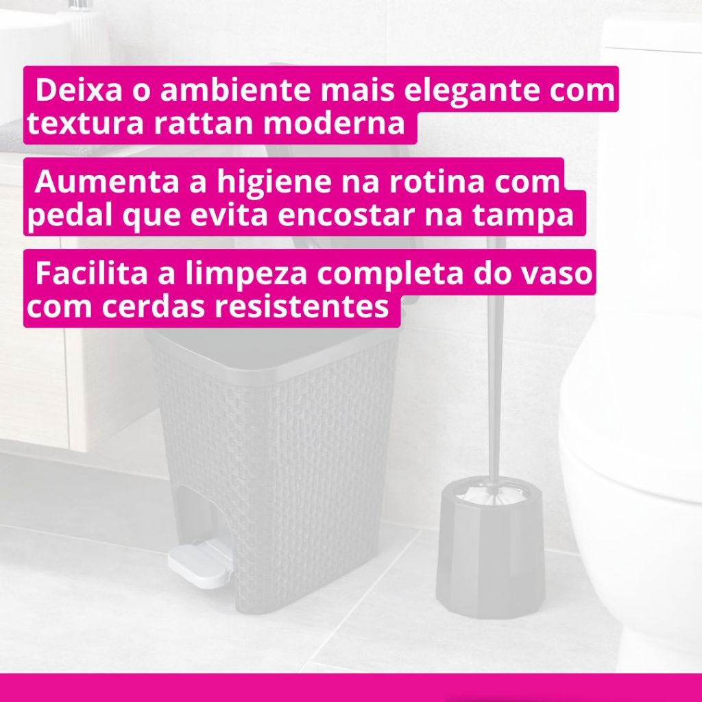 Kit Banheiro Rattan Lixeira 7 Litros Com Pedal E Escova Sanitária