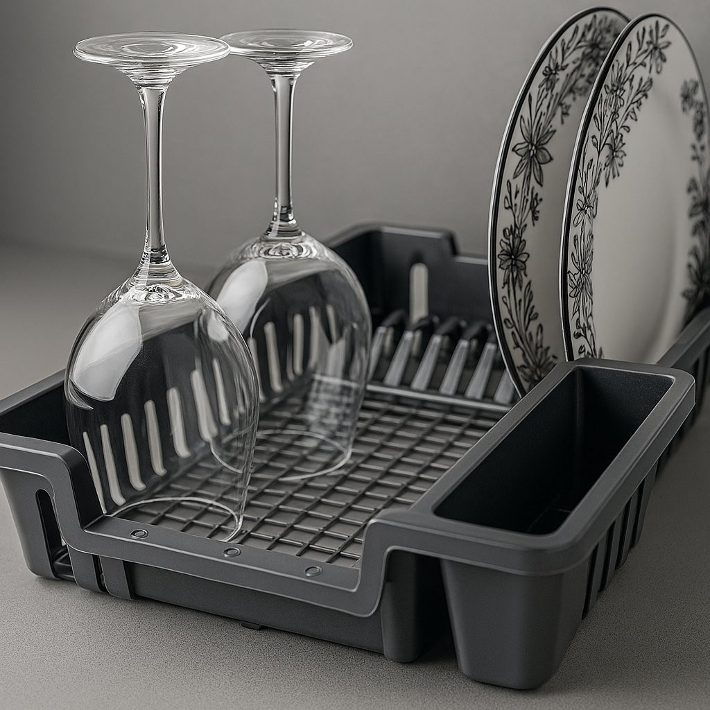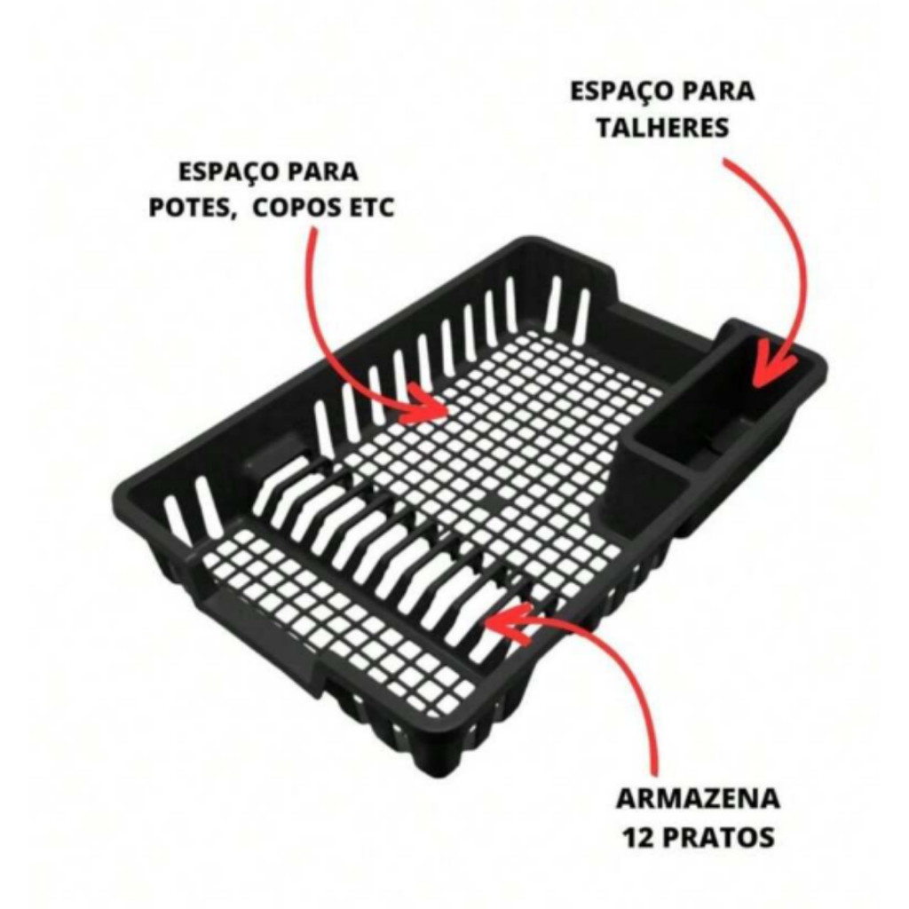 Escorredor De Louça Elegante 12 Pratos Copo Porta Talheres Pia Cozinha Plástico Preto Branco Cinza