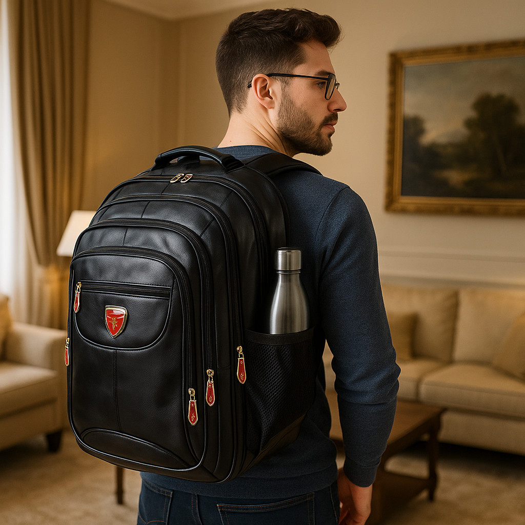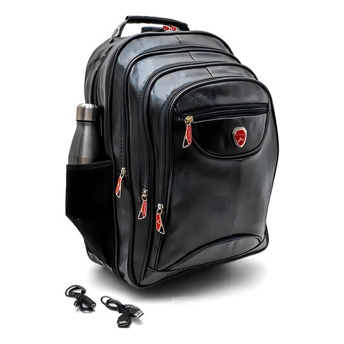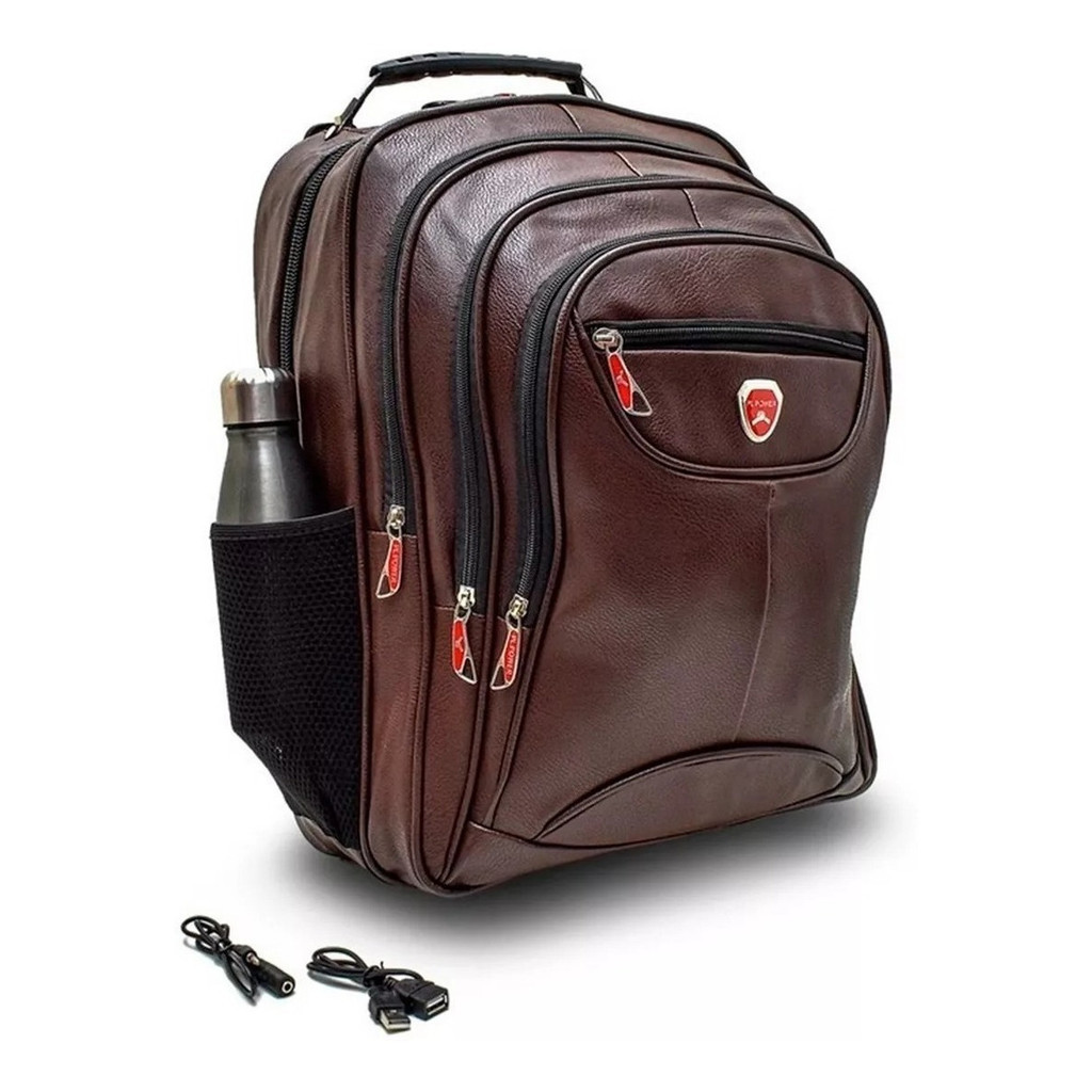 Mochila de Couro Masculina Notebook 45L Bolsa Impermeável Reforçada Com Cabo de Aço USB Preto Marrom