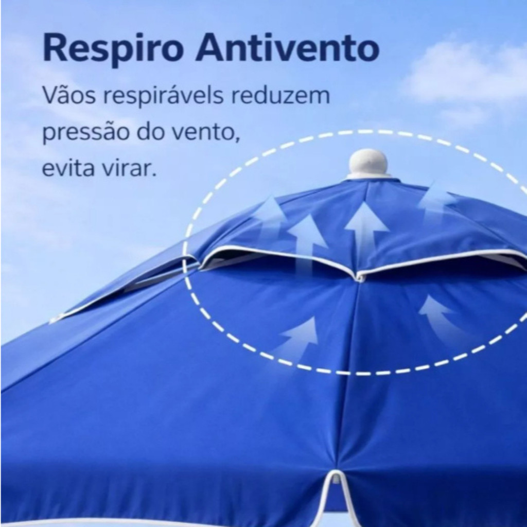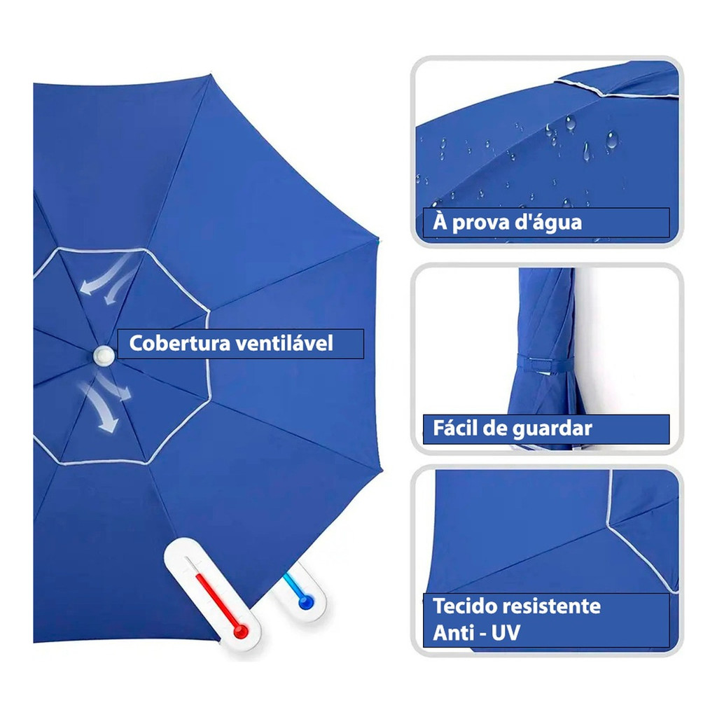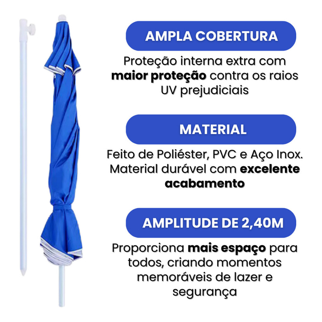 Guarda Sol Gigante Grande 2,40m Ombrelone Articulável C/ Proteção UV Impermeável Sol Praia Piscina