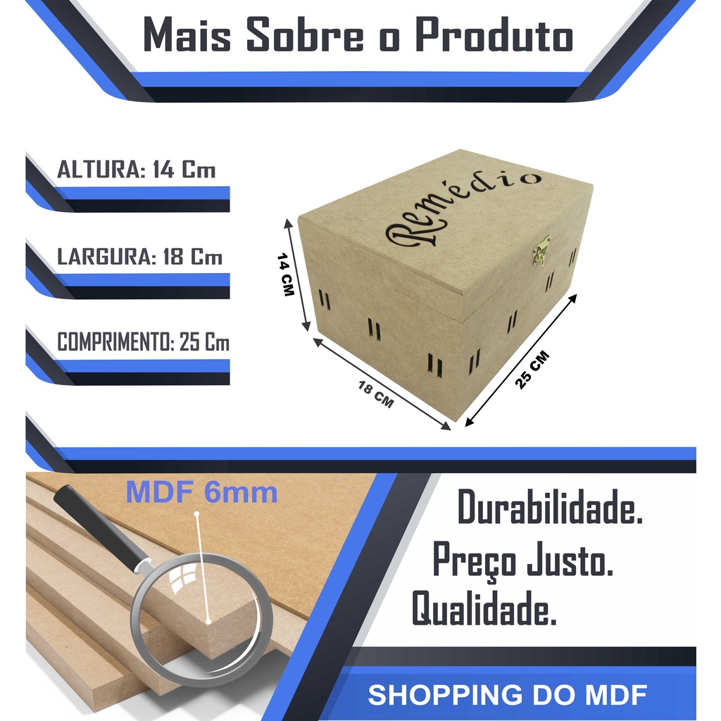 Caixa Organizadora Remédio Farmácia Com Fecho 25x18x14 Mdf Crú