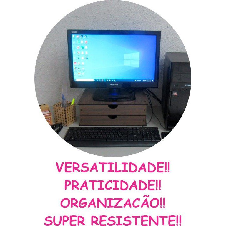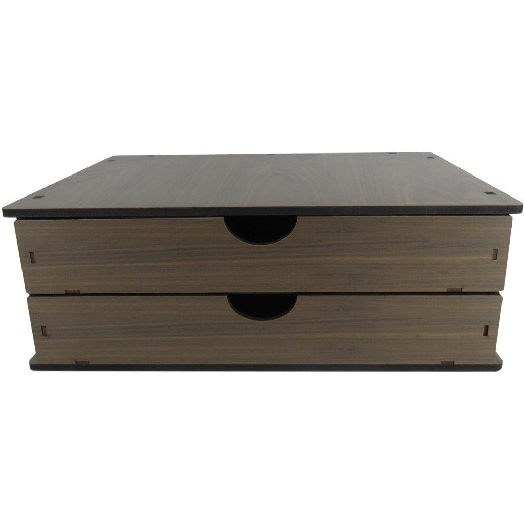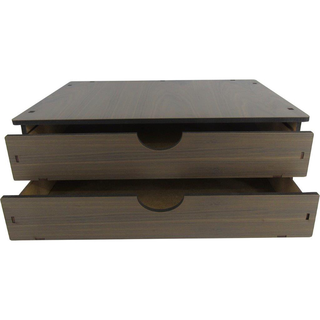 Gaveteiro Organizador Documentos e Suporte Monitor de Mesa 2 Gavetas Madeira Marrom Escura Mdf