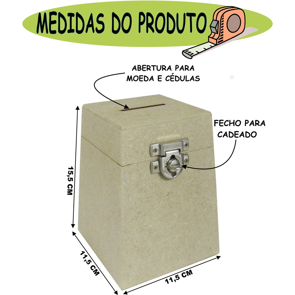 Caixa Urna Cofre Com Fecho Cadeado N° 1 / 15,5x11,5x11,5 Cm Mdf