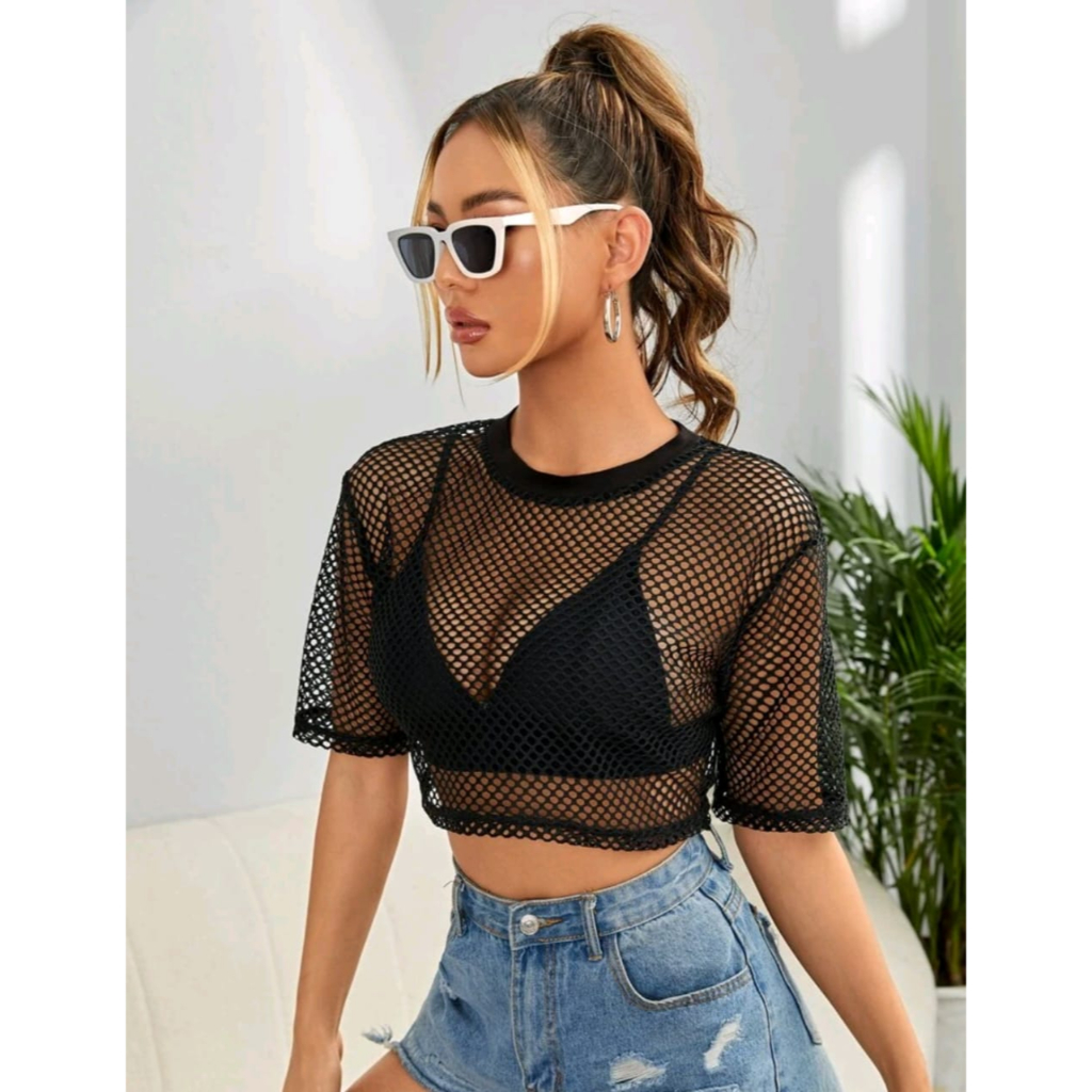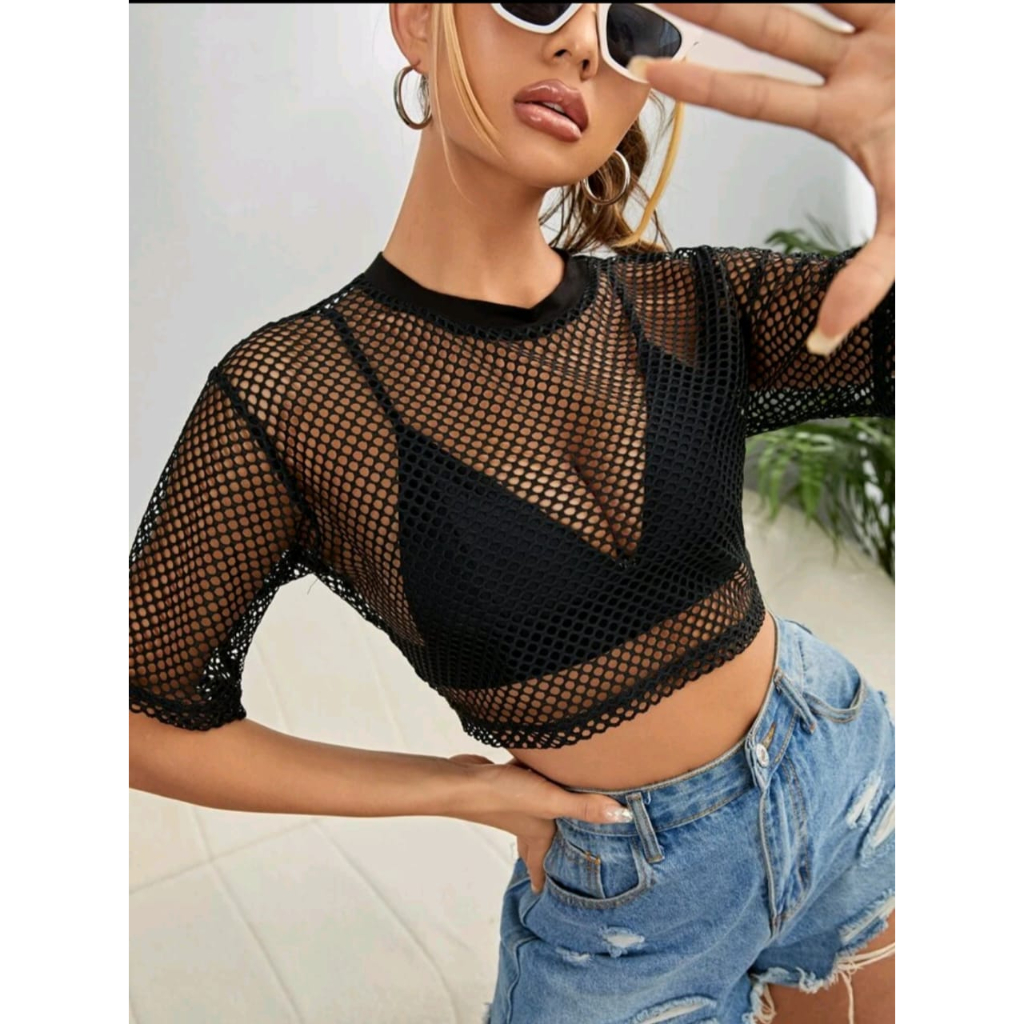 Blusinha de Tela Arrastão Verão TOP Manga 3/4 P ao G5 Plus size