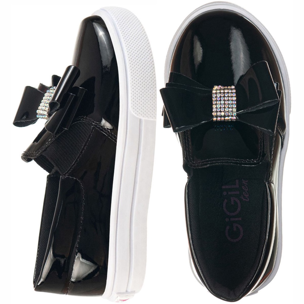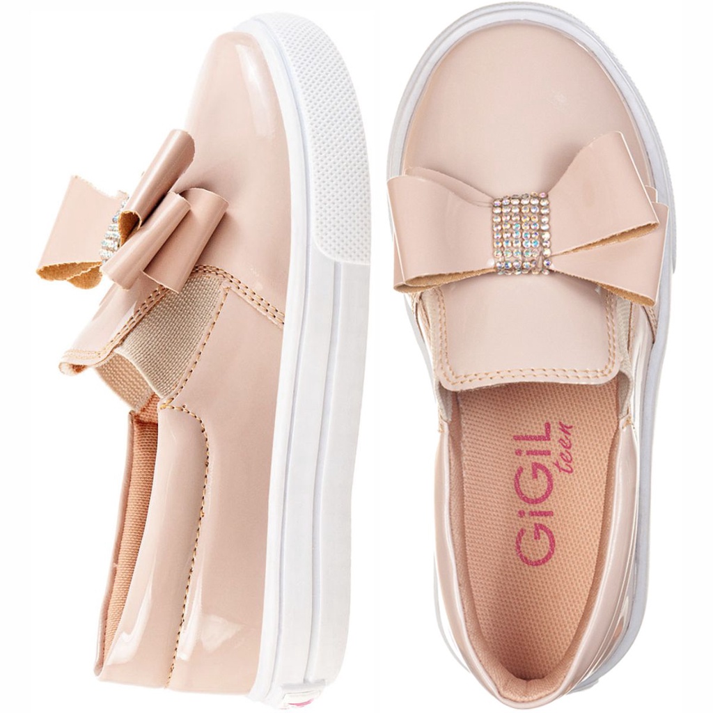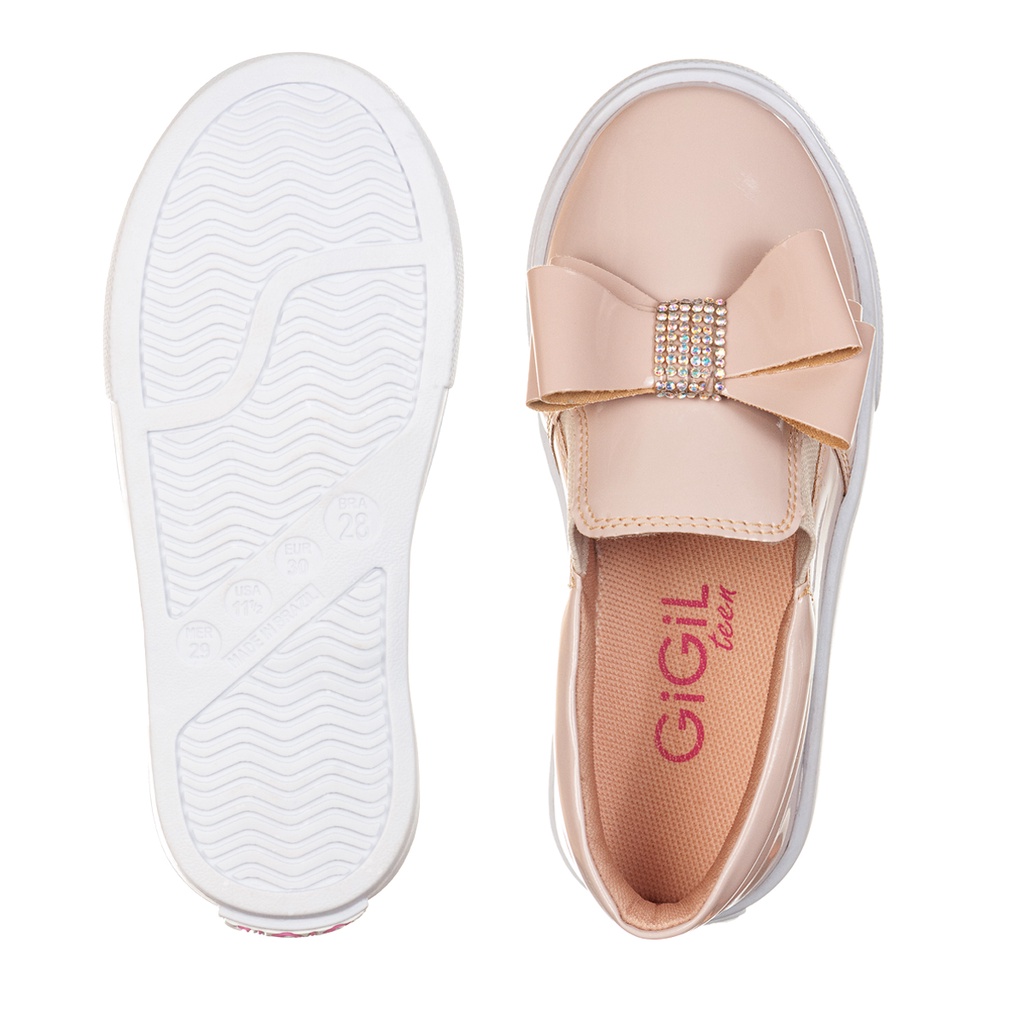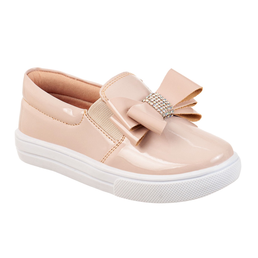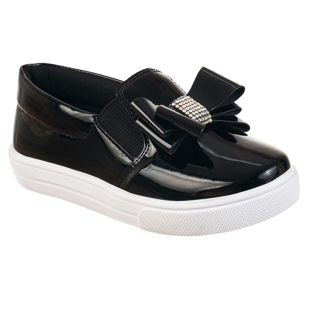 Tênis Casual Infantil Feminino Iate Slip-on Menina Laço Brilho Strass Confortável Moda Festa Calce Fácil Leve Enfeite