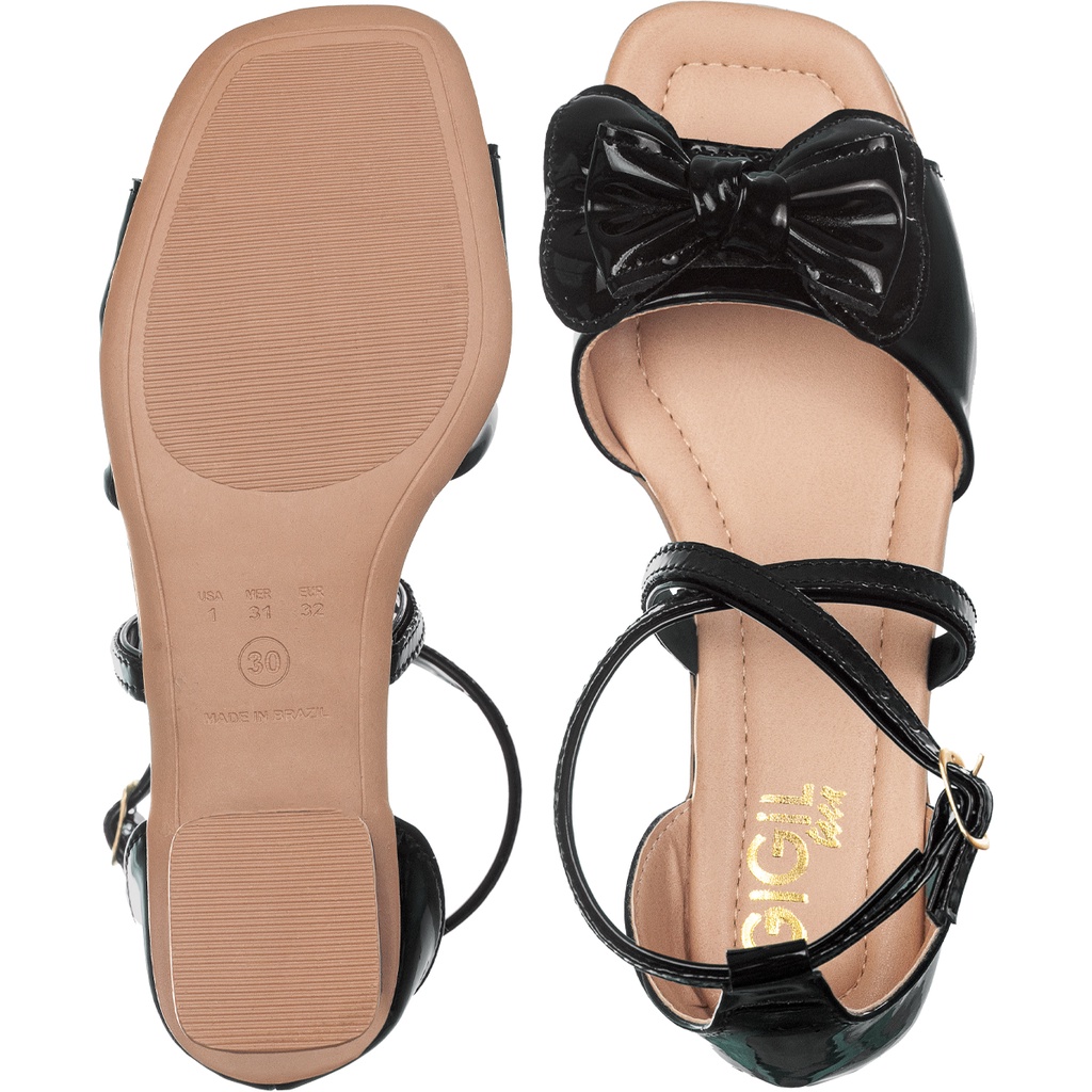 Sandalia Infantil Menina Salto Grosso Baixo Enfeite Laço Conforto Festa Confortável Blogueira Tiras Festa Promoção