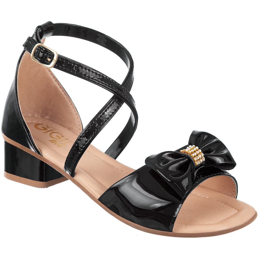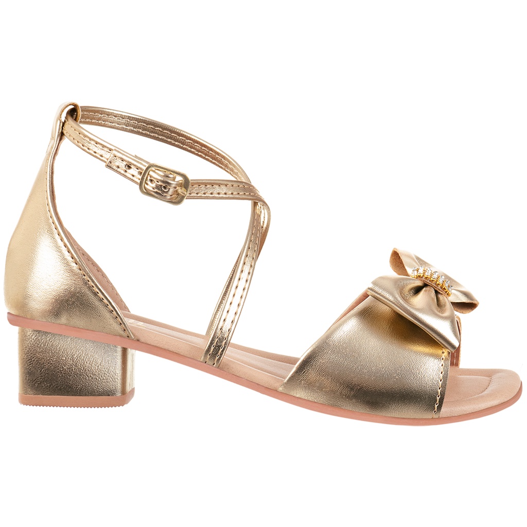 Sandália Infantil Menina Salto Grosso Baixo Confortável Enfeite Laço Strass Brilho Conforto Festa Moda Tira Promoção