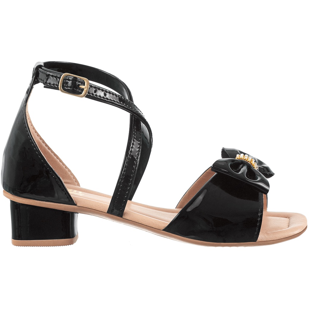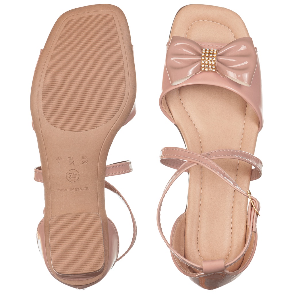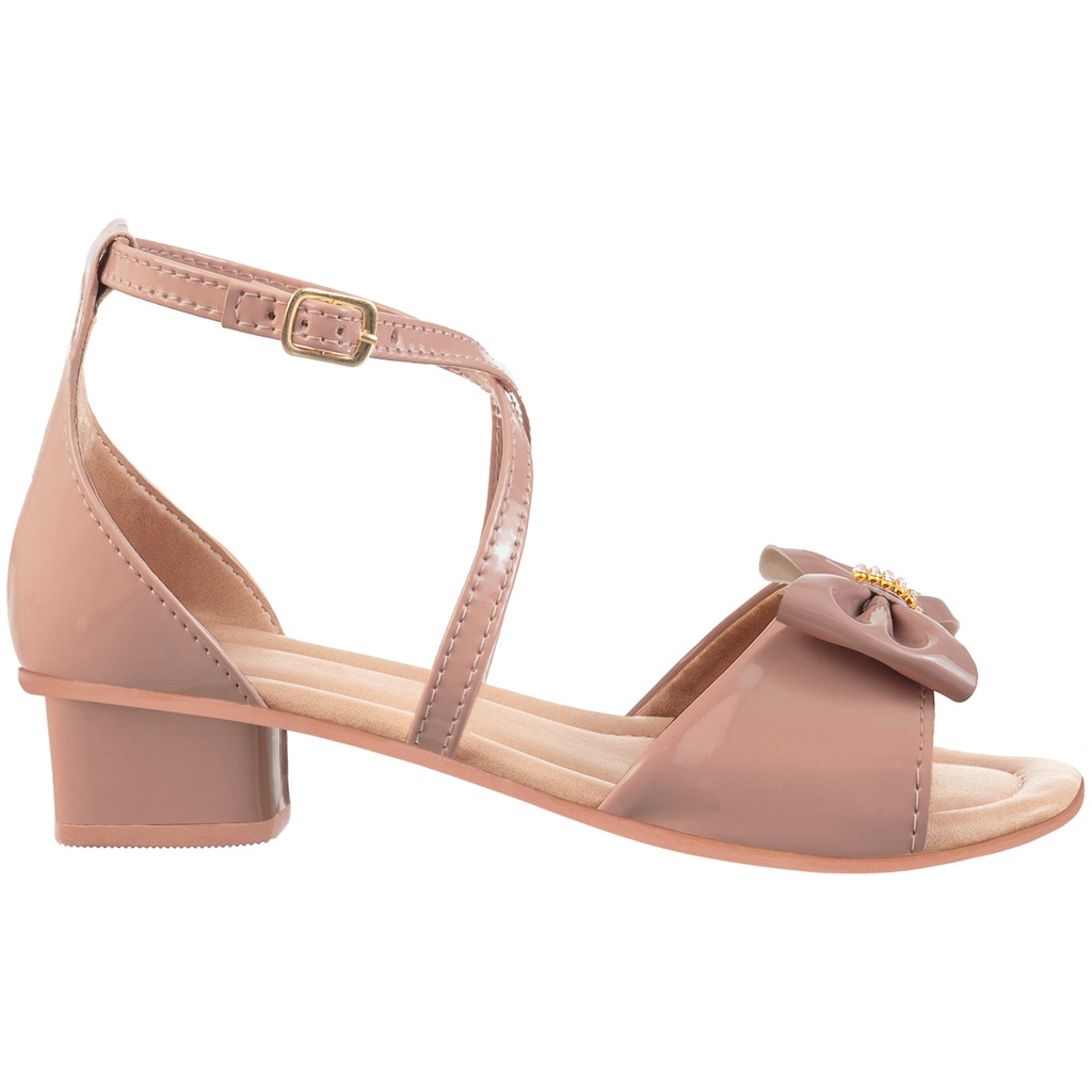 Sandália Infantil Menina Salto Grosso Baixo Enfeite Laço Strass Brilho Festa Confortável Moda Blogueira Atual Tira Leve