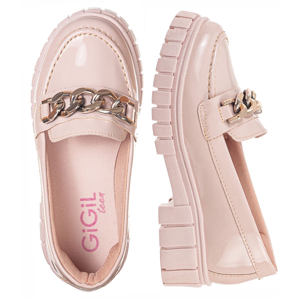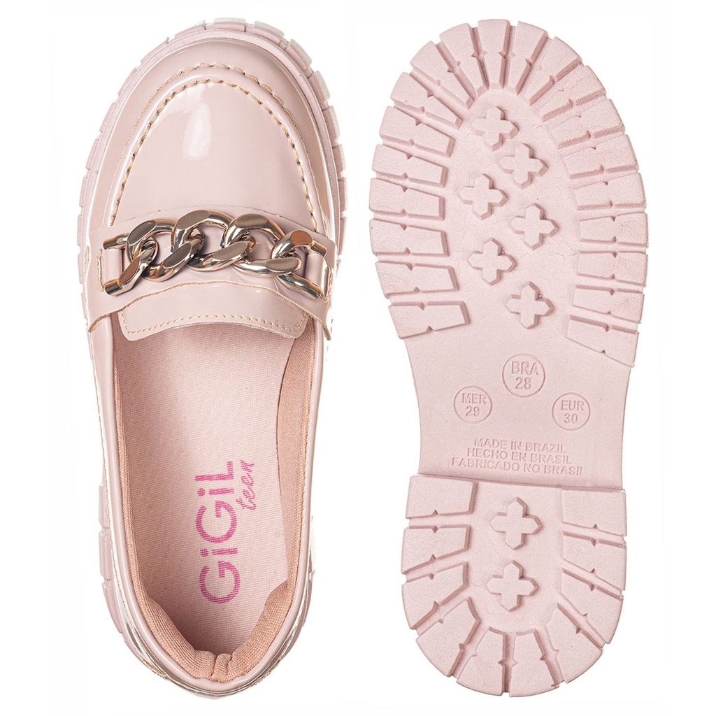 Mocassim Feminino GiGiL Teen Tratorado Sapato Fivela Flatform Calce Fácil Detalhe Moda Atual Confortável