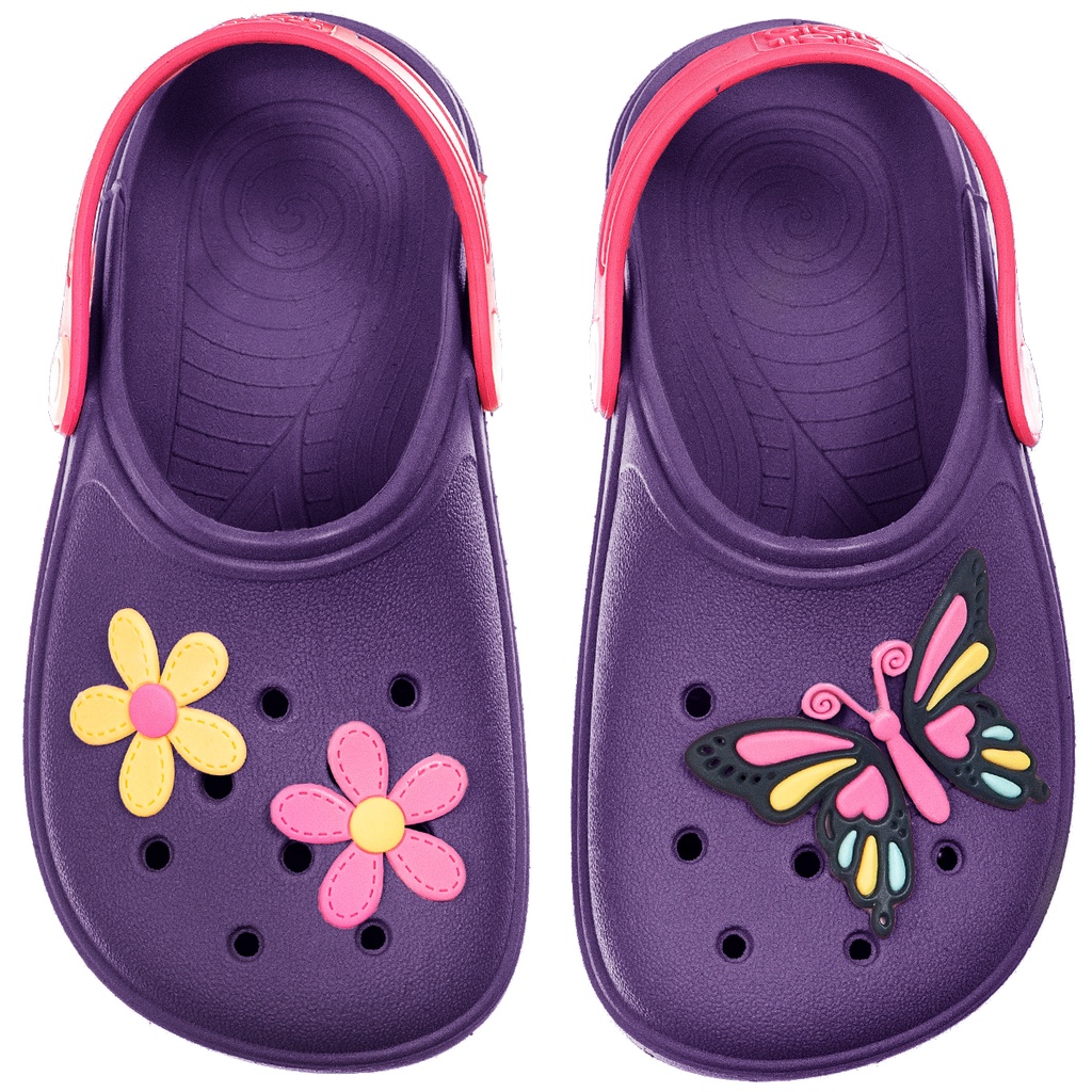Babuche Infantil Sandália Feminina Chinelo Calce Fácil Menina Criança Antiderrapante Borracha Flor Borboleta Colorido