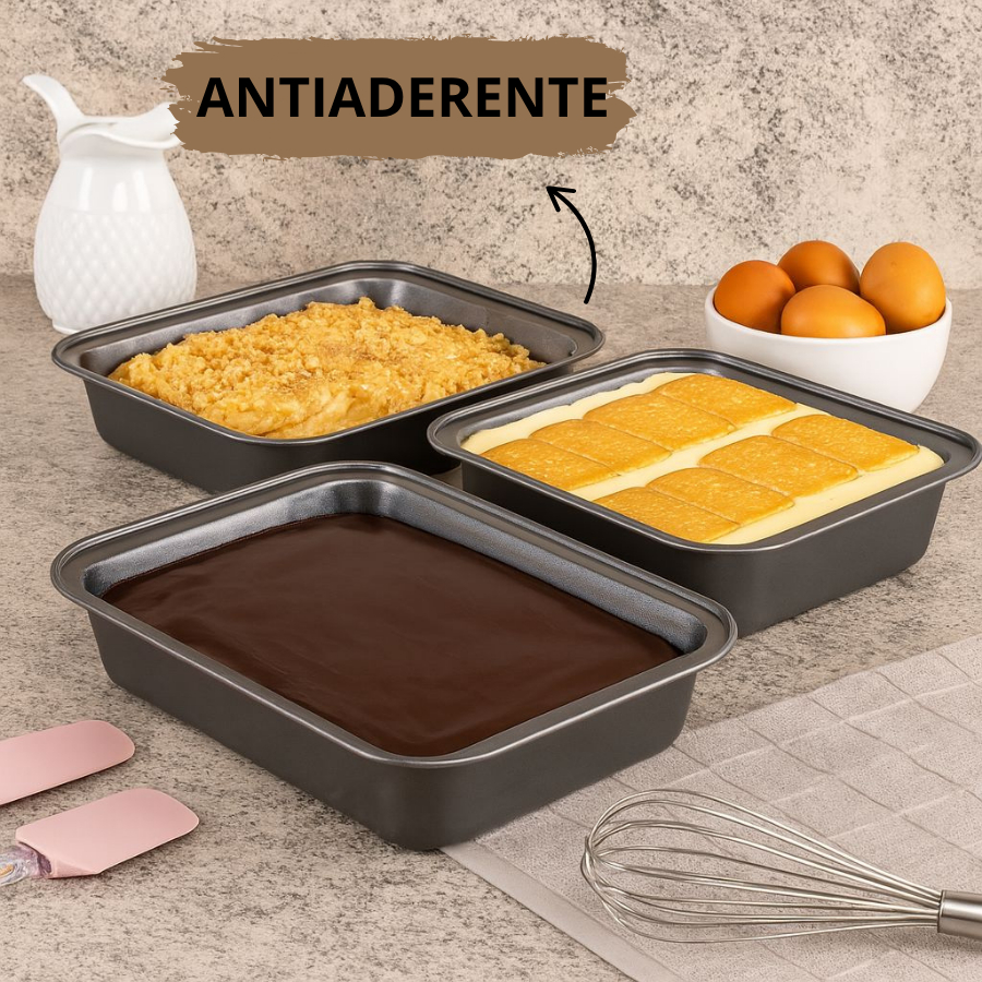 Kit Forma Assadeira Antiaderente Bolo Lasanheira Sobremesa Forno