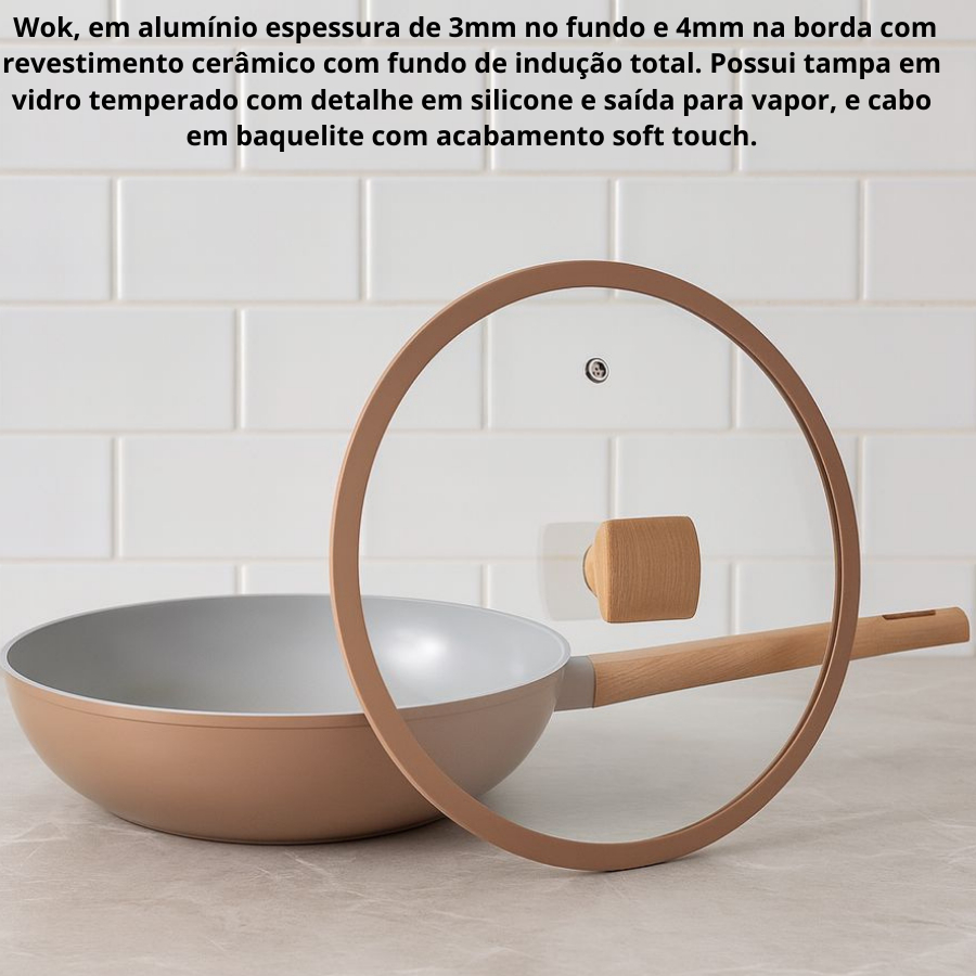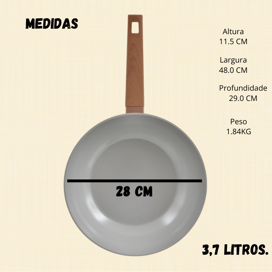 Wok Frigideira de Cerâmica de Indução Fogão Gás 28cm - Fracalanza