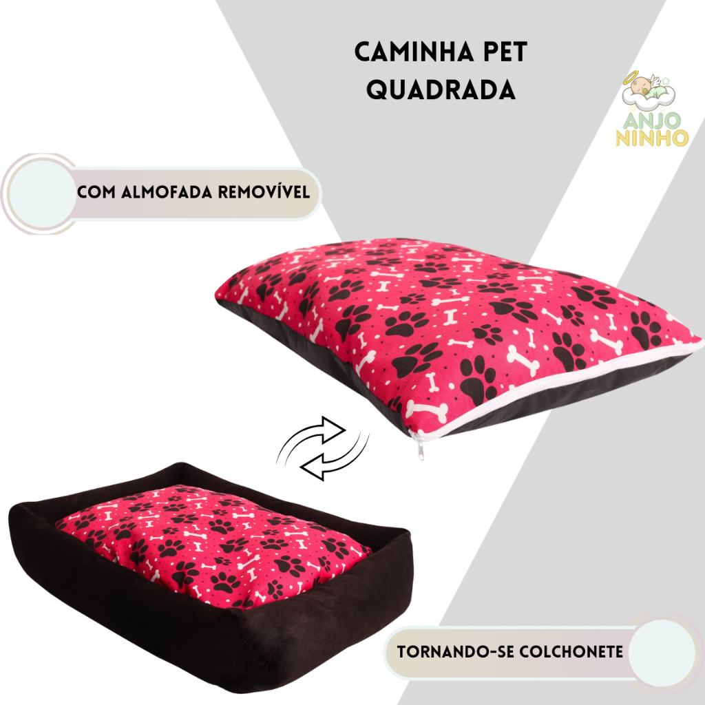 Cama Pet Caminha de Cachorro e Gato Colchonete Removivel Antiderrapante Quadrada Luxo Porte Grande e Pequeno