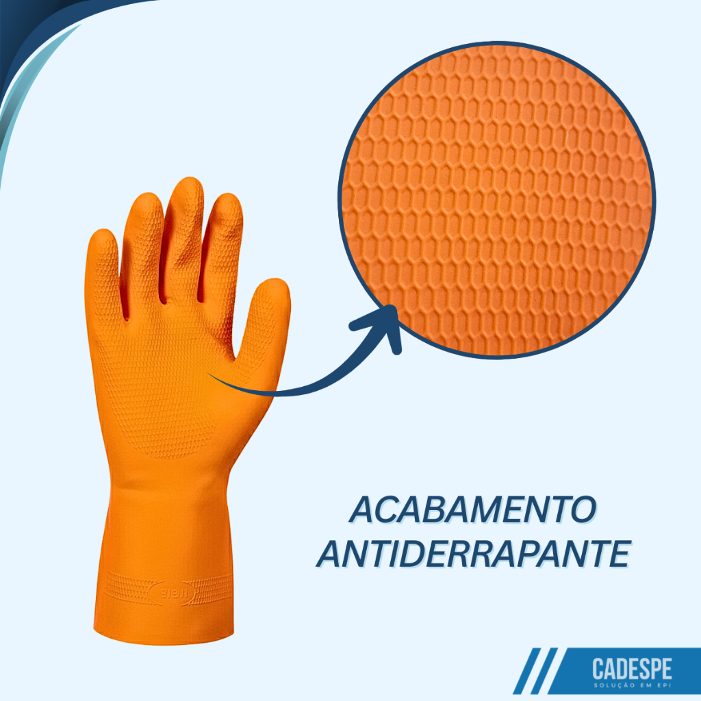 Luva Super Reforçada Látex / Proteção Limpeza Químicos Louça Epi Jardinagem / VOLK Laranja Ca 37815
