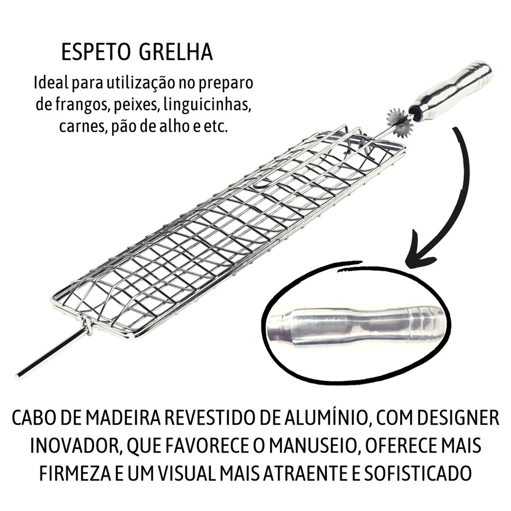 Espeto Grelha Giratório P/ Gira Grill Peixes Frangos