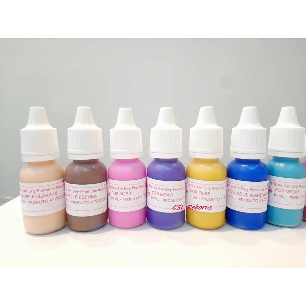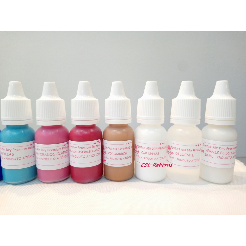 Kit de Tintas Air Dry Premium Bebê Reborn com 11 Cores Concentradas + Verniz 10ml, e diluente de 20ml brinde.