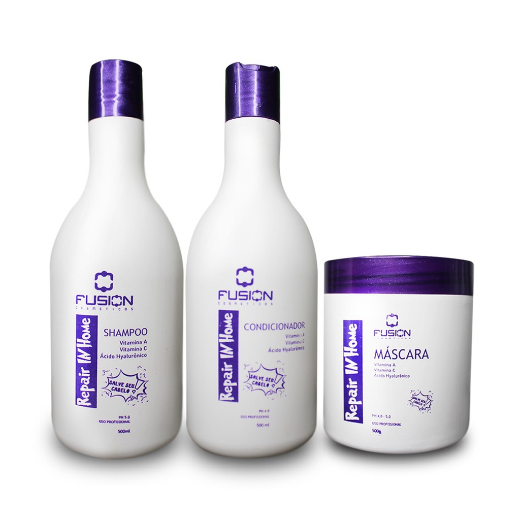 Kit Manutenção 3 Passos Shampoo - Condicionador - Máscara 500ml Fusion Cosméticos
