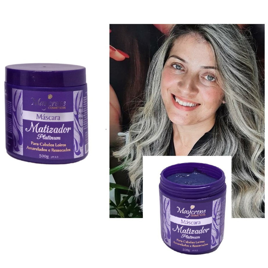 Kit Matizador Platinum Loiro mais Máscara de Hidratação Profunda Cabelos Desmaiados Maycrene 4x500