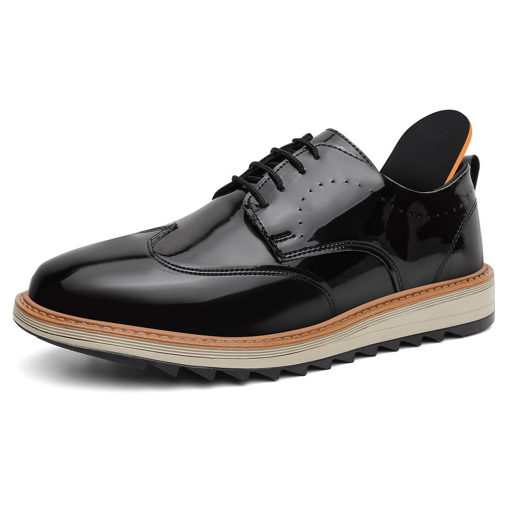 Sapato Oxford Casual Derby Tratorado Masculino Verniz Preto Moda Evangélica