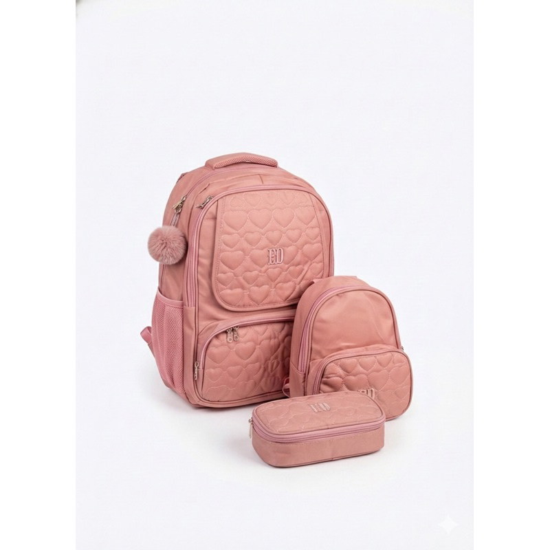 Kit 3 peças/ Mochila Grande De Costa estilo / inspiração Rebecca Bonbon Lancheira Estojo